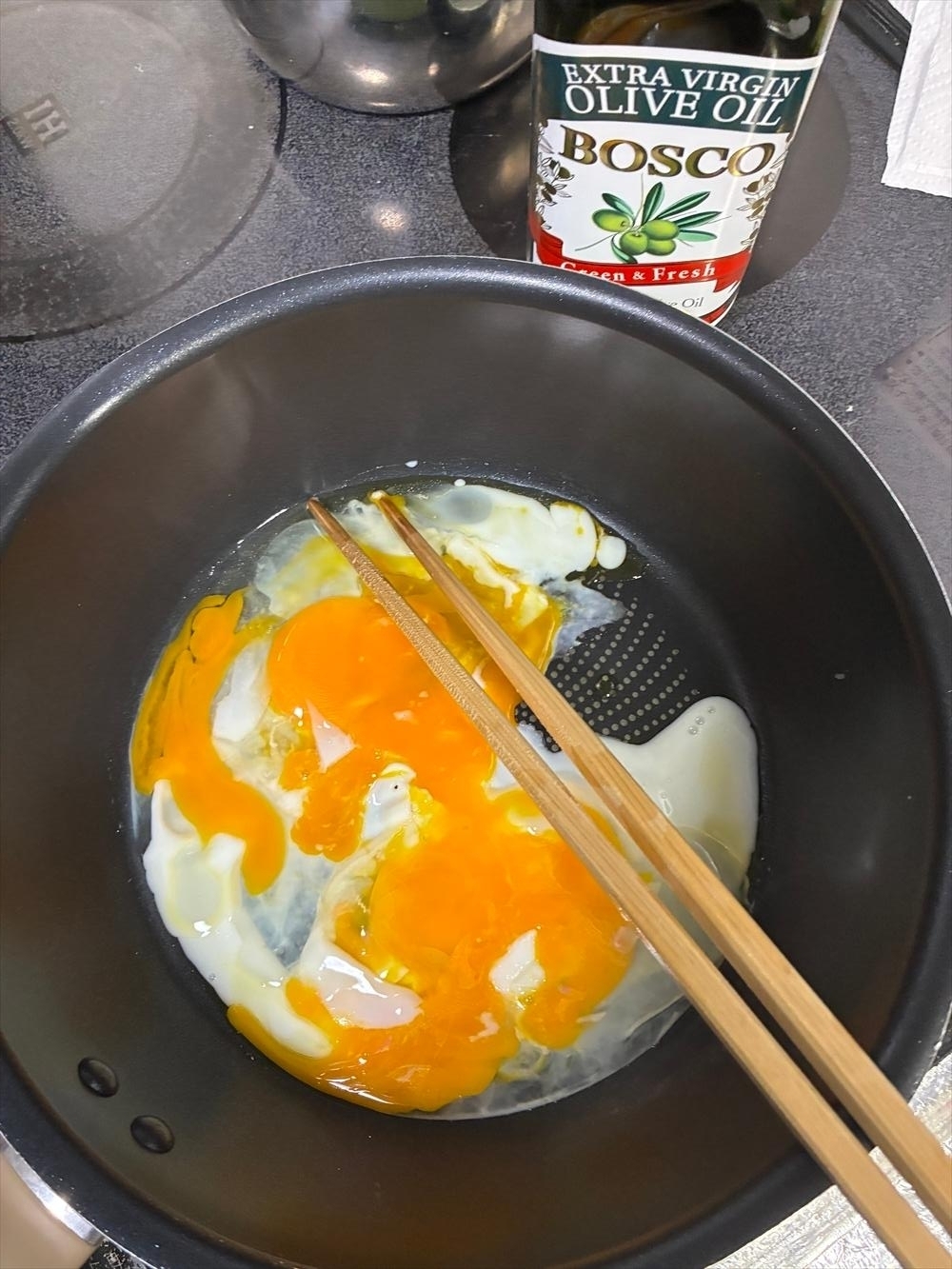 今回2人前作るので、フライパンはそれなりの大きさのものを用意。