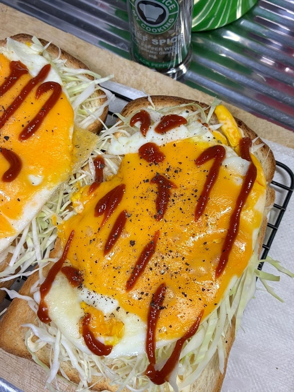 目潰しエッグにチェダーチとろ~りトーストサンド! レシピ・作り方