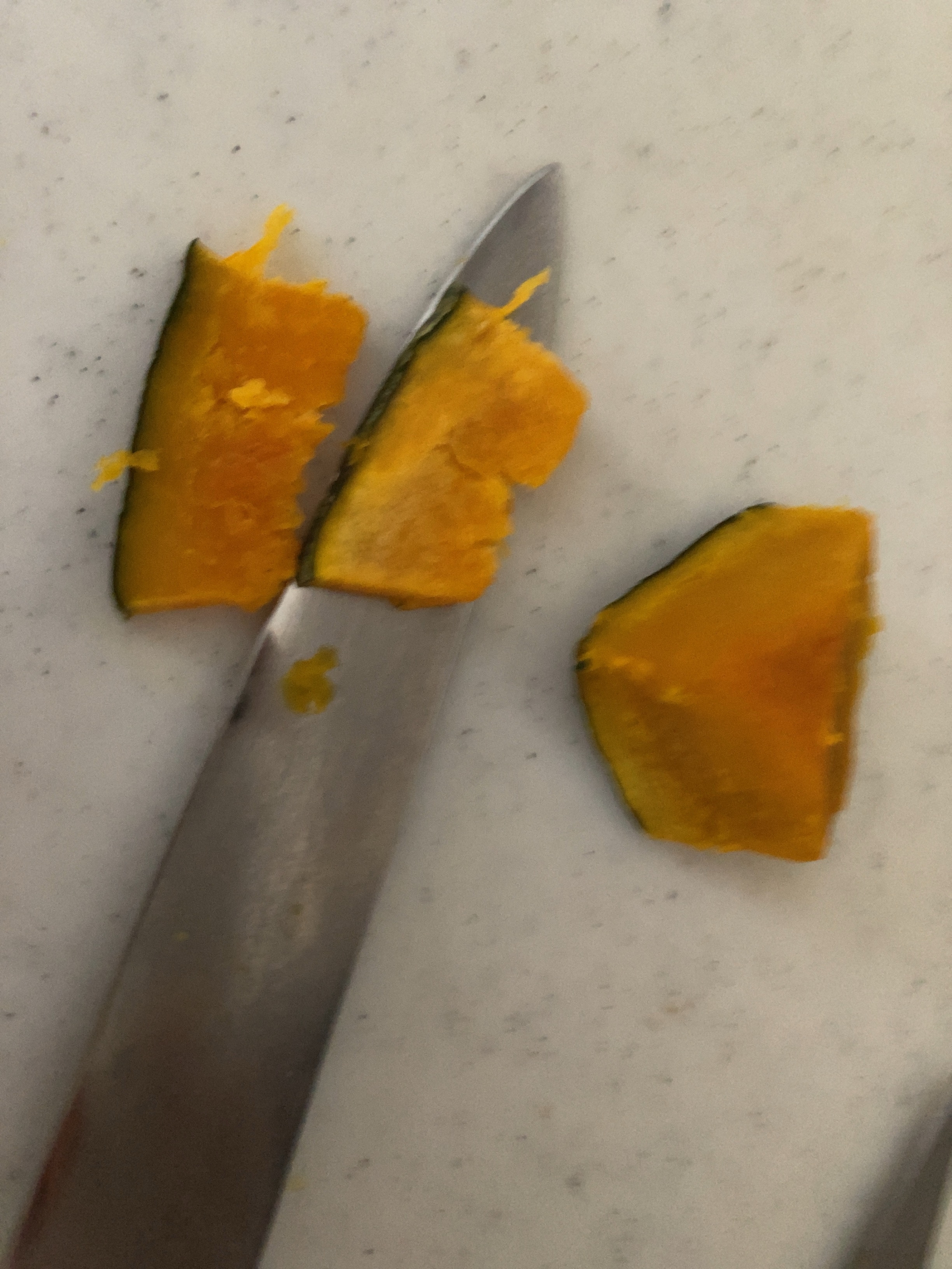 『温めたかぼちゃ』をスライスに切る