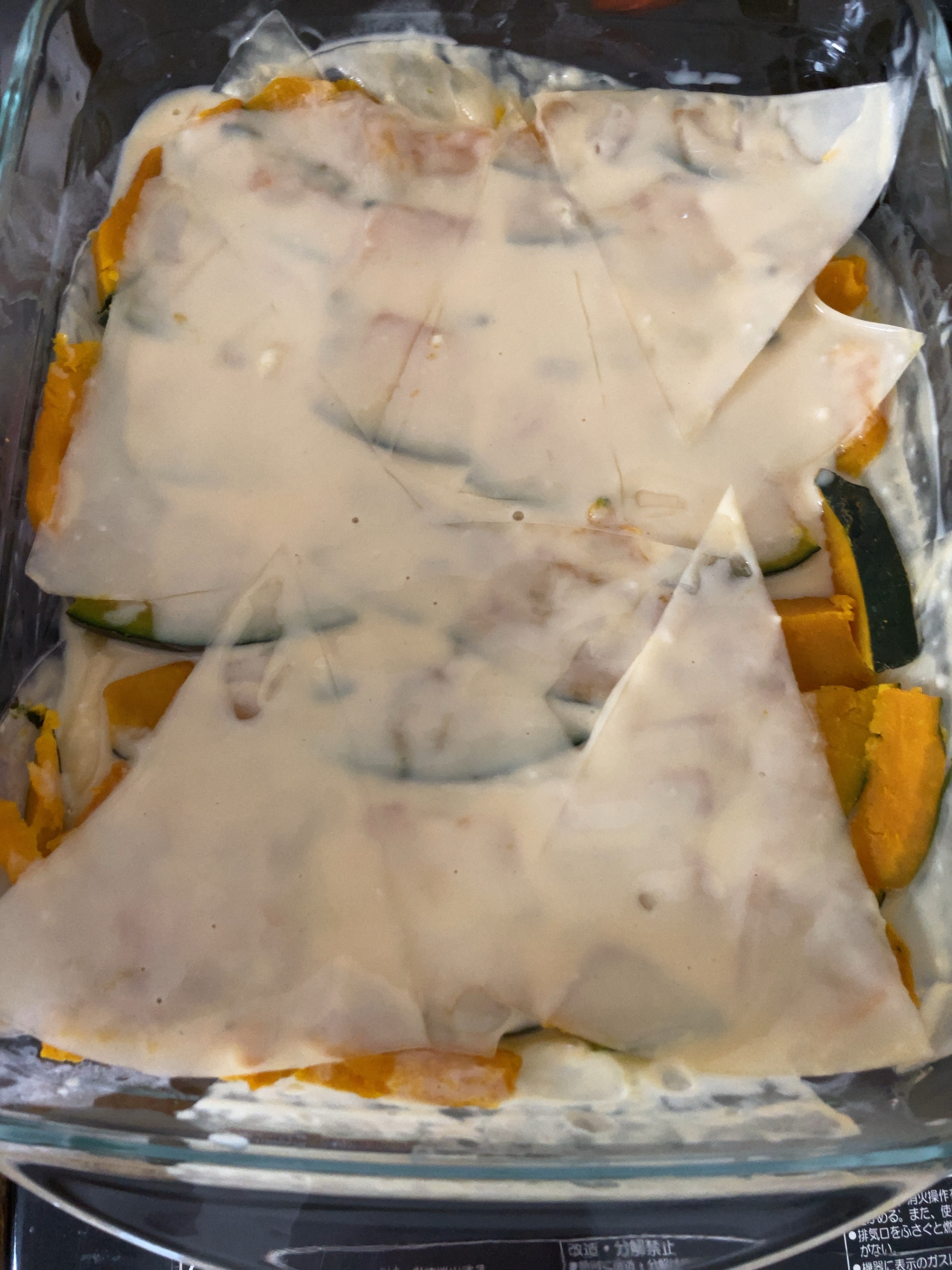【冷凍かぼちゃ】を電子レンジにて600W1時15分くらいに温める