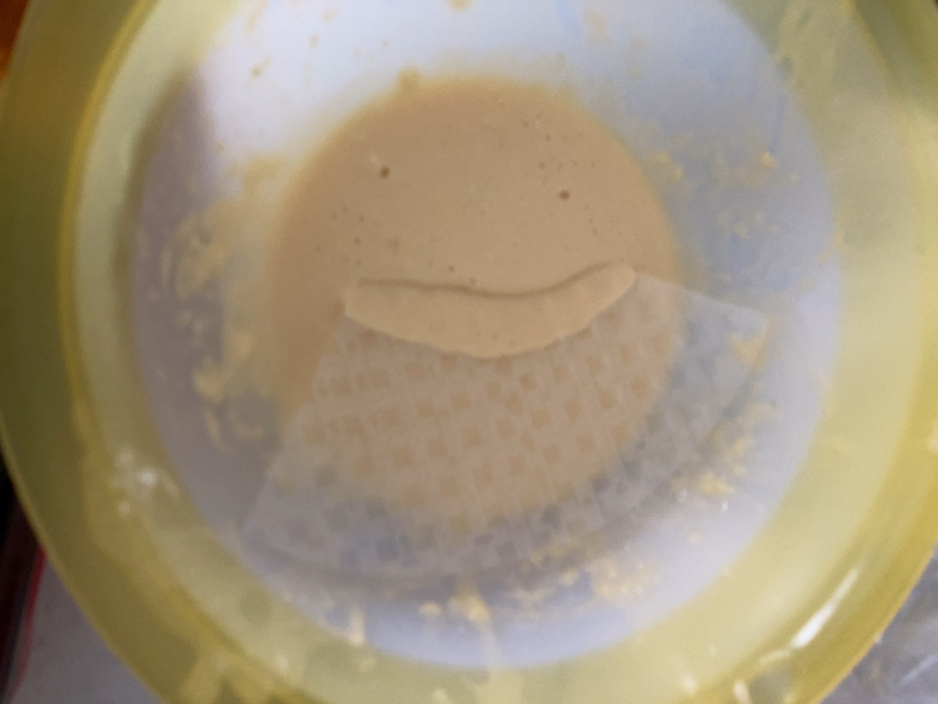 手順5・6のホットケーキミックス液に潜らせたライスペーパーを耐熱容器の底が埋まる部分(5枚)と上層部(5枚)です。