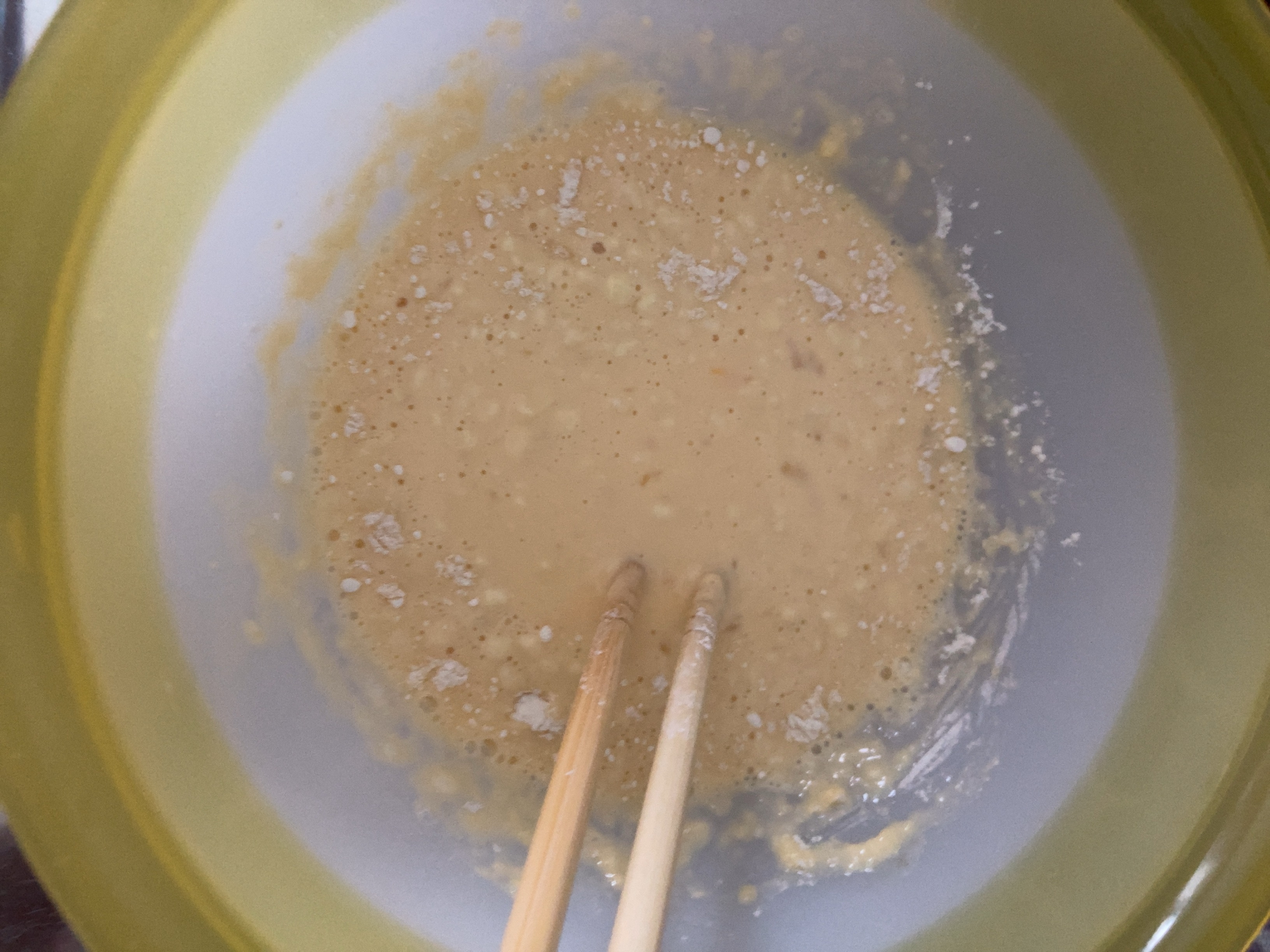 ボールに『ホットケーキミックス・卵・牛乳』を入れて混ぜる