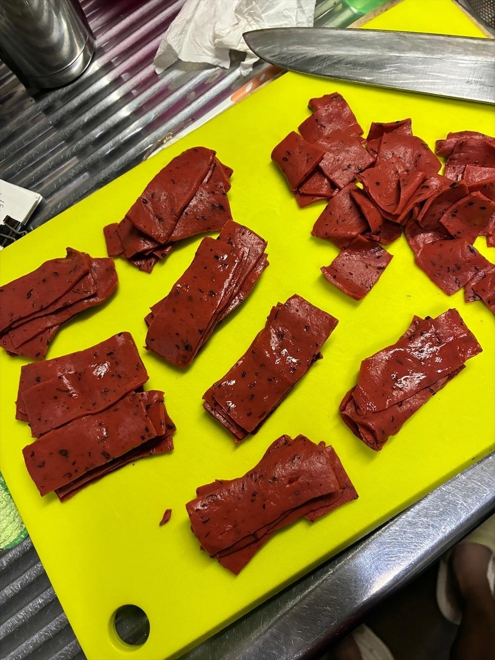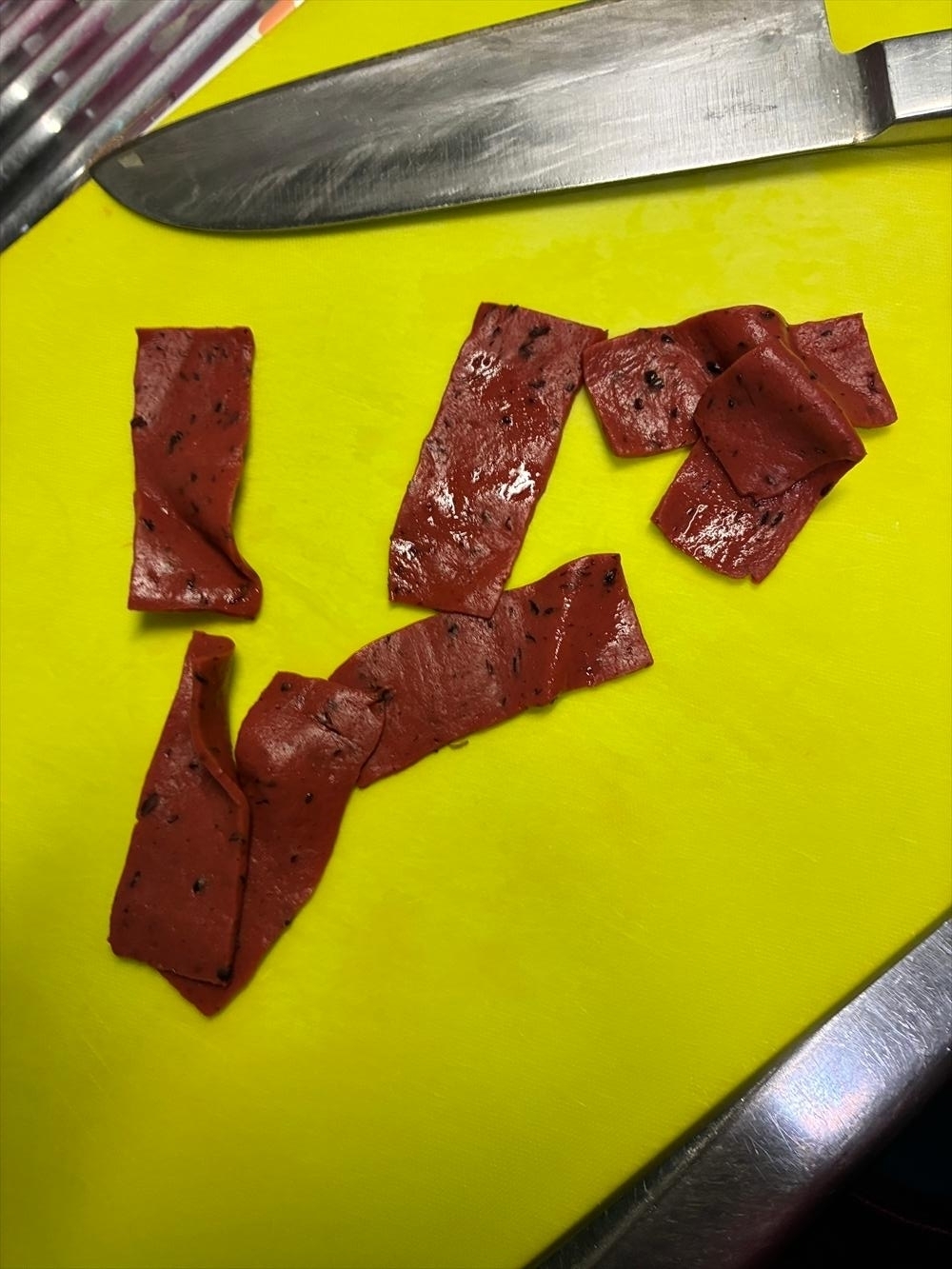 こうして1枚のひれひれ赤こんにゃくが効率よく2枚の真四角になりましたある意味倍増。