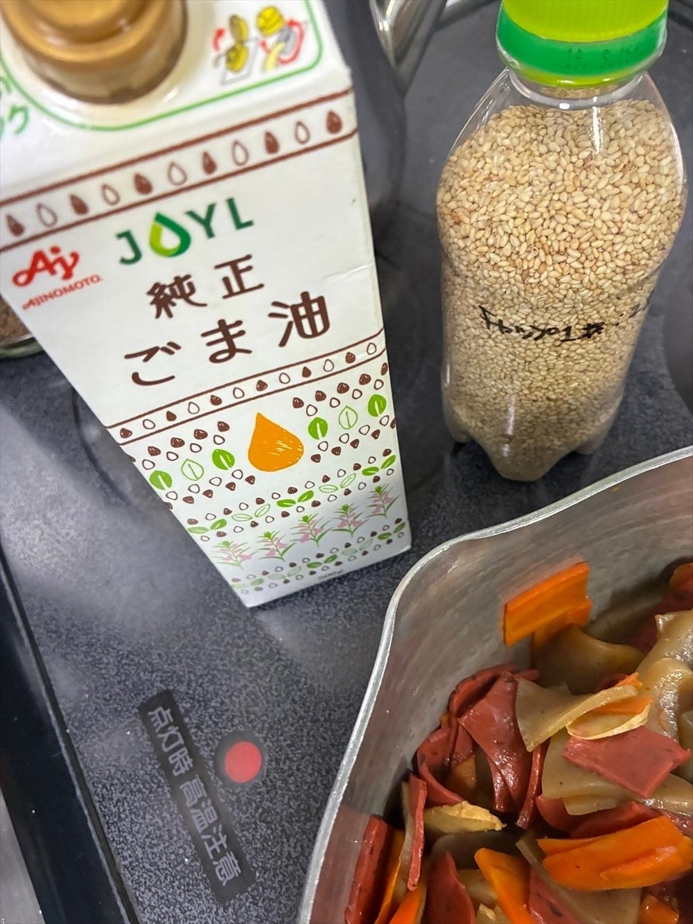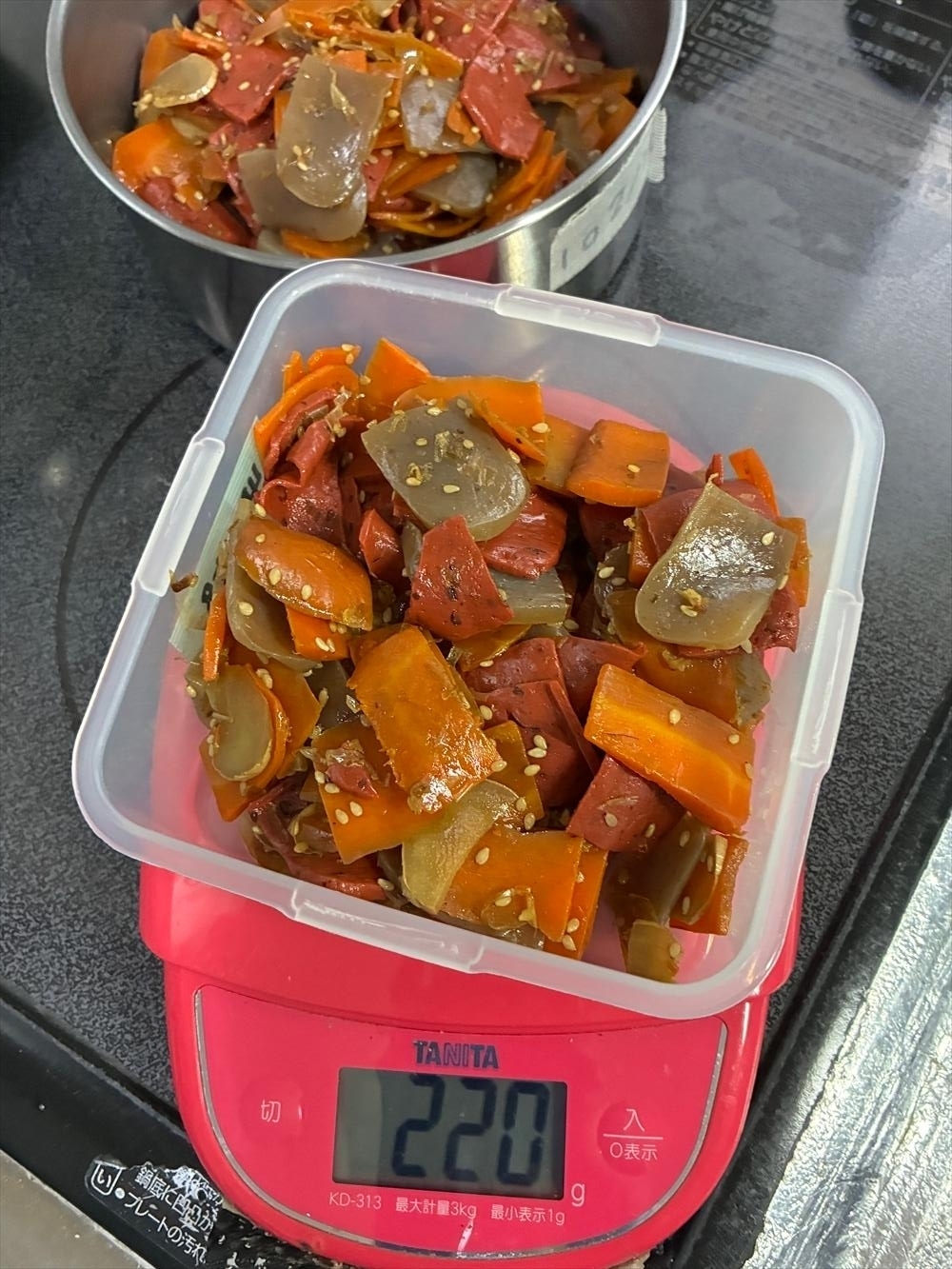なぜなら人参しっかり加熱するため油入ってるから。