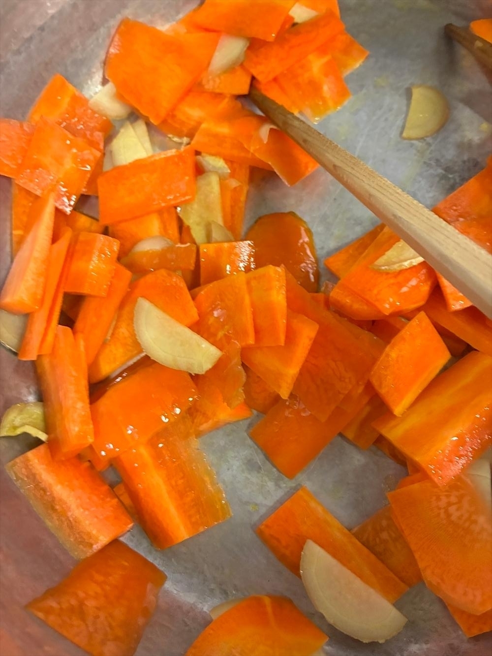 そして人参!これもまた糖質高い食材です、じっくり加熱で甘みを出すのでお砂糖は少しに。
