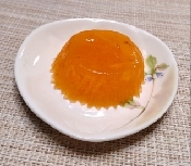 渋抜きした熟した柿のゼリー、柿の素朴な味を生かしたかったので柿の実と砂糖だけで作りました。ゼリーにするには甘みが少なので砂糖だけ砂糖だけは加えました。