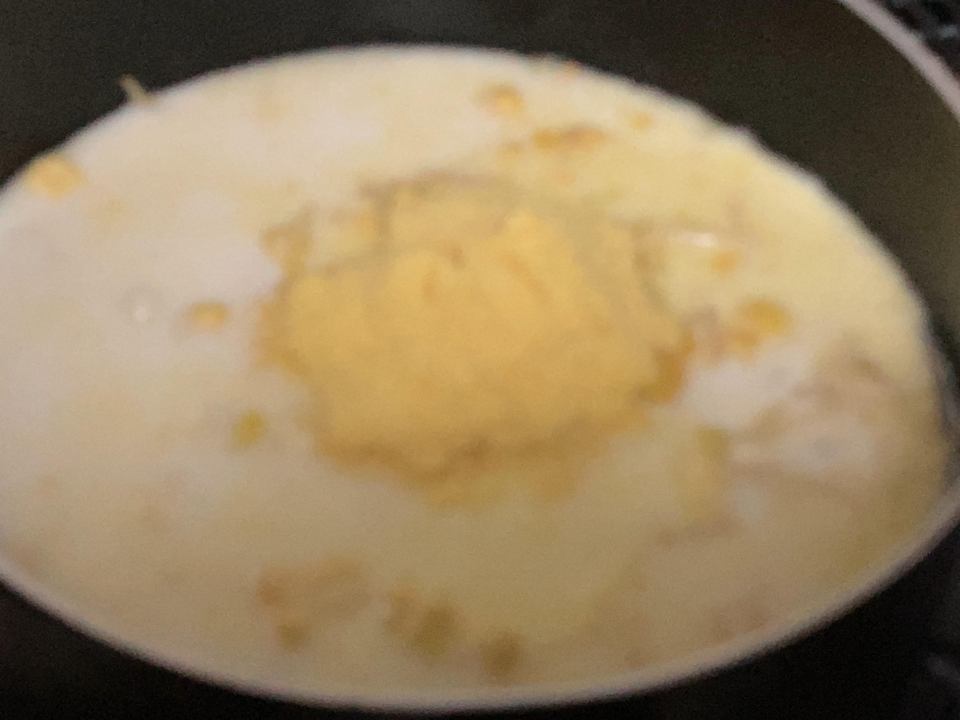[豆乳・牛乳・つぶコンポタージュ]を入れて混ぜる