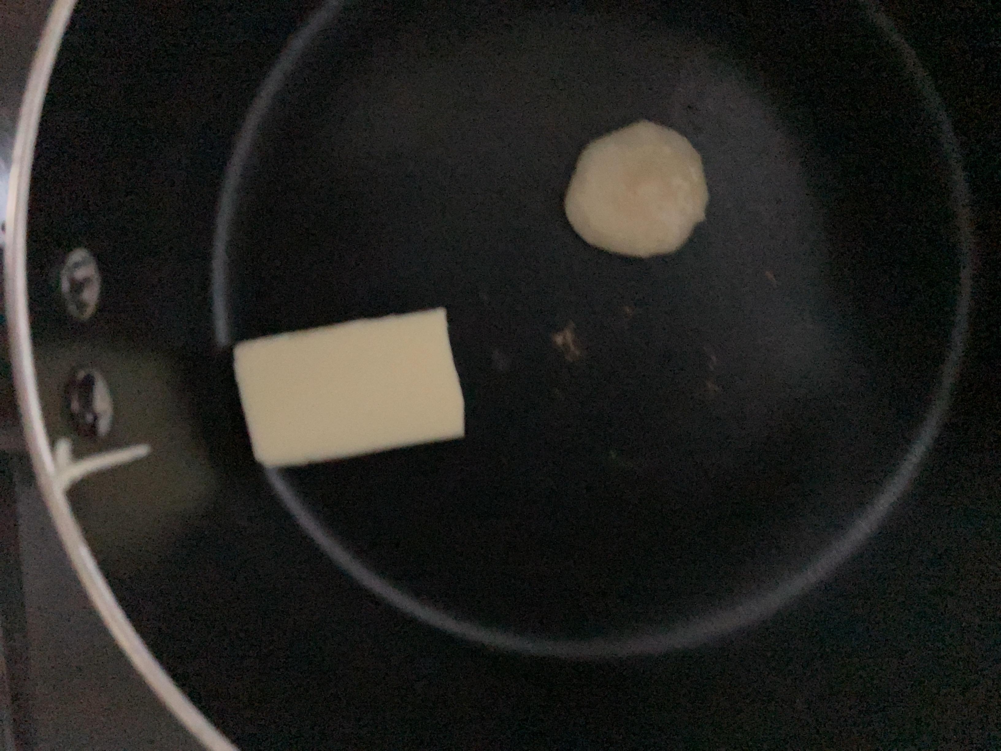 フライパンに[バター・にんにくチューブ]を入れて中火に点火