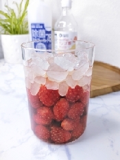 ※保存容器の大きさにもよりますが、腐敗防止のため、いちごが全部隠れる位まで注いでください。