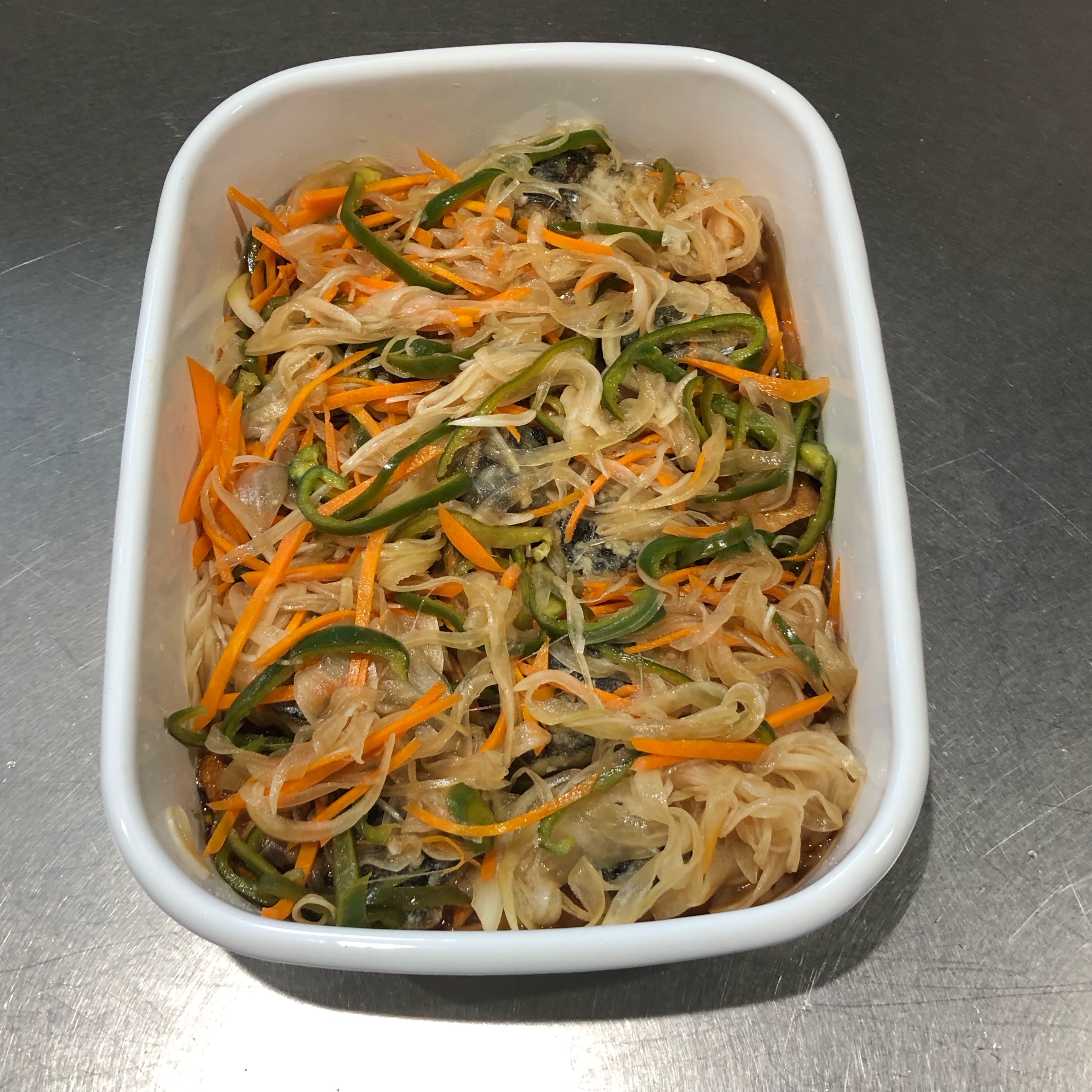 野菜を鯖の上にのせて冷蔵庫で30分以上漬けたら完成。