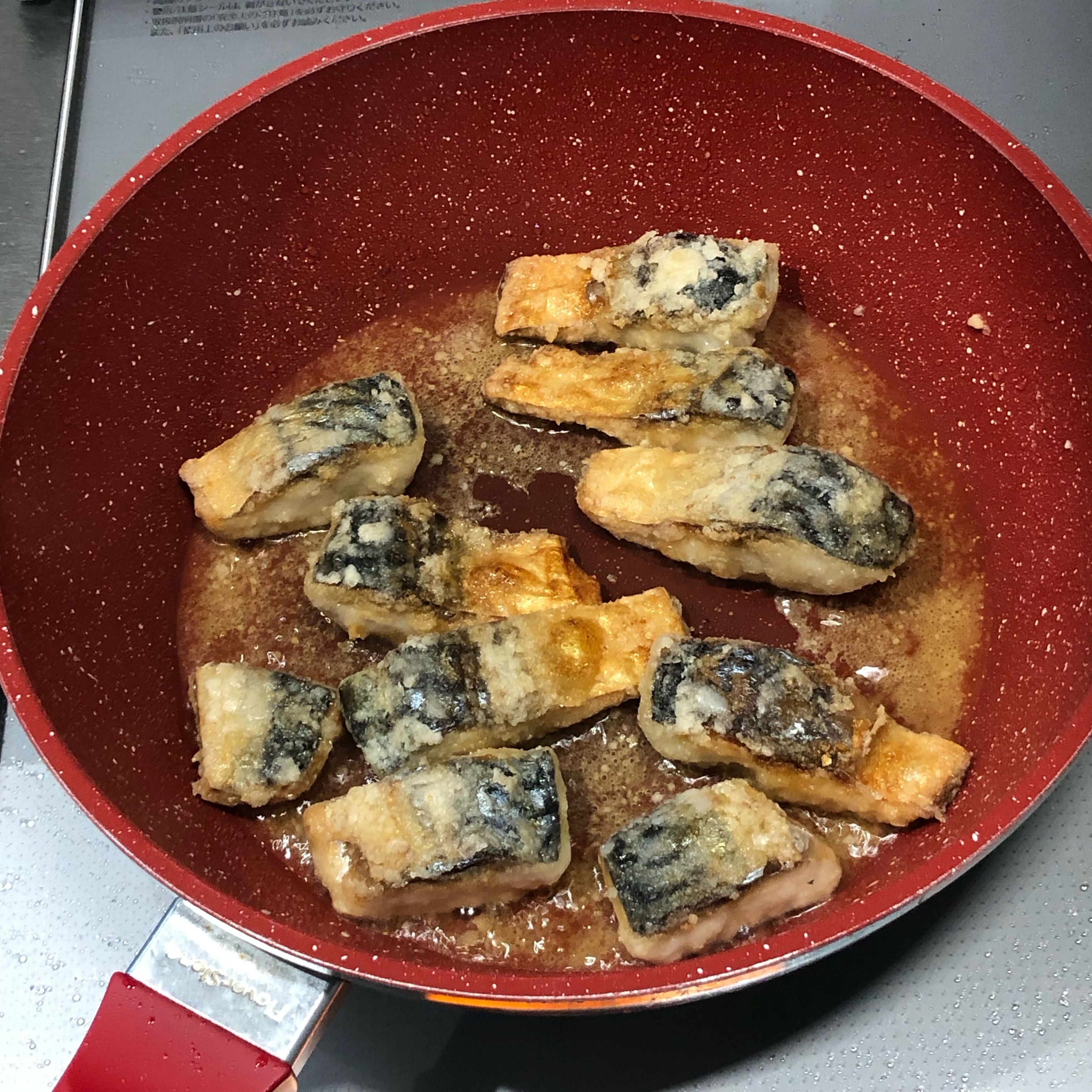 サラダ油を熱したら、鯖を揚げ焼きにする。