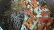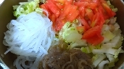 トマトとマロニーと糸こんにゃくを入れて煮る