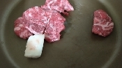 フライパンに牛脂を入れて 牛薄切り肉を入れて 火にかける