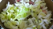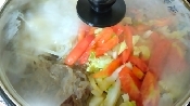 沸騰したら一度 蓋を開けて 混ぜる さらに再び 蓋をして弱火で煮る