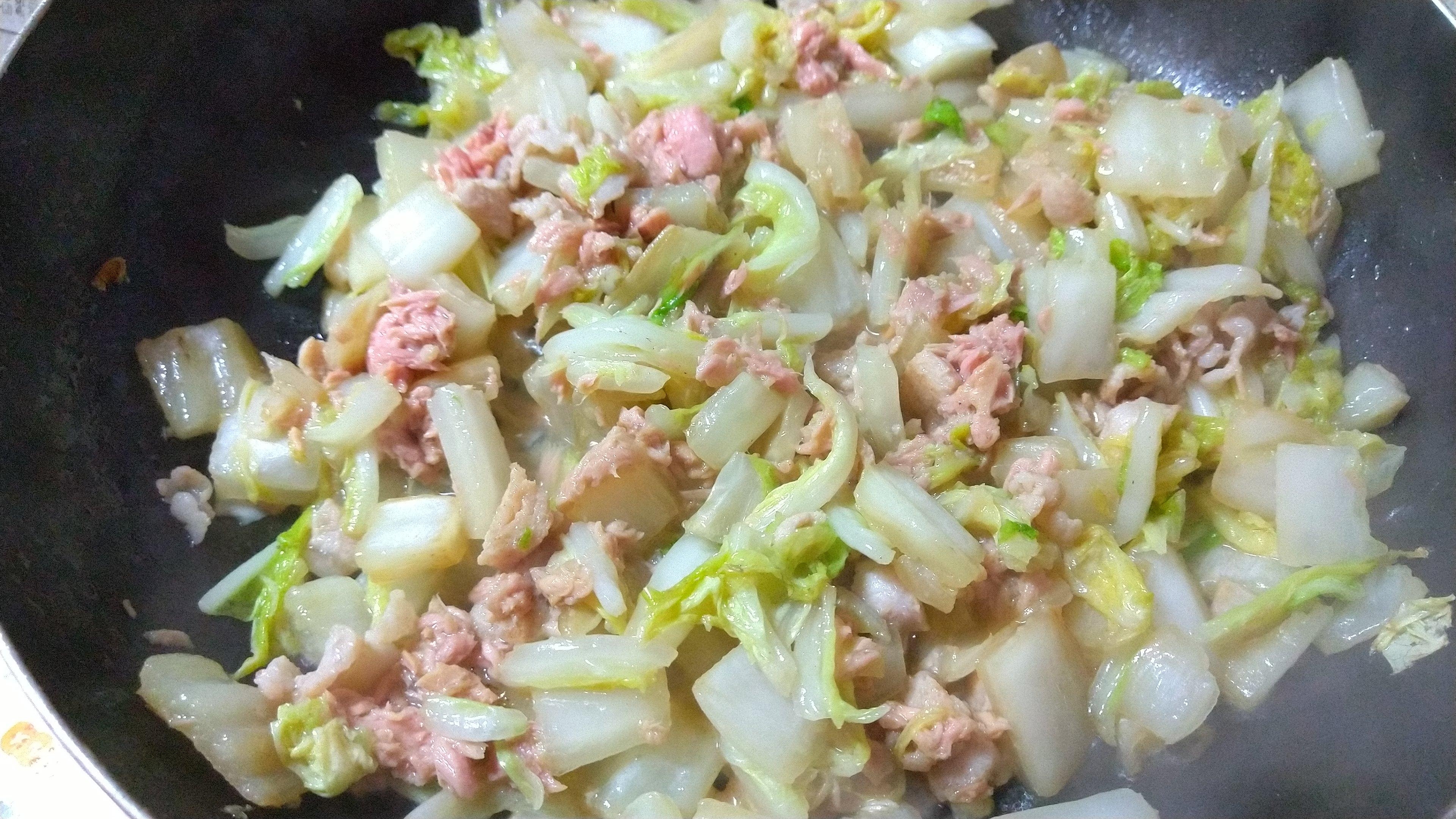 白菜が埋まっていたので 豚肉や シーチキンと炒めてみようと思って作った