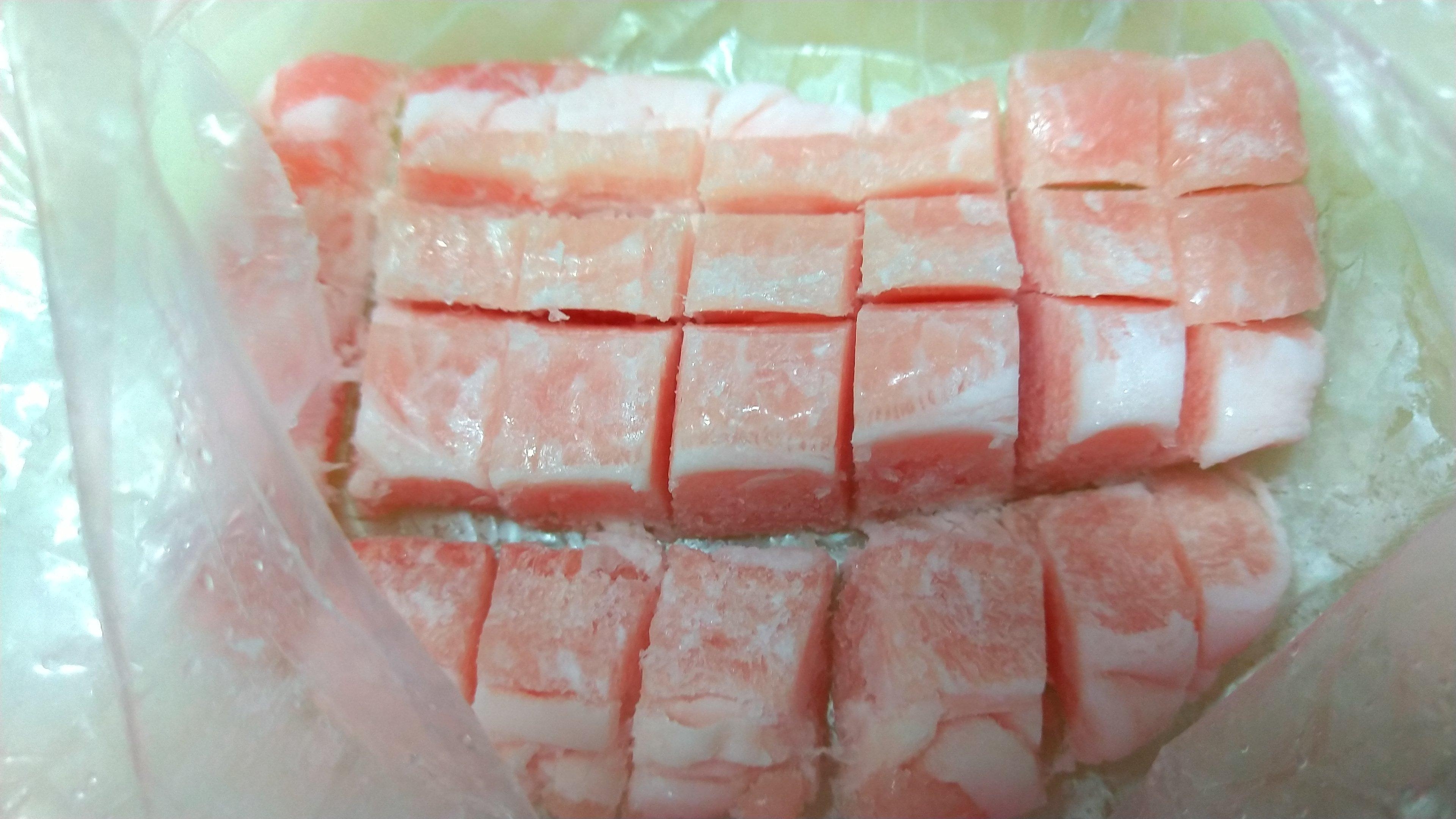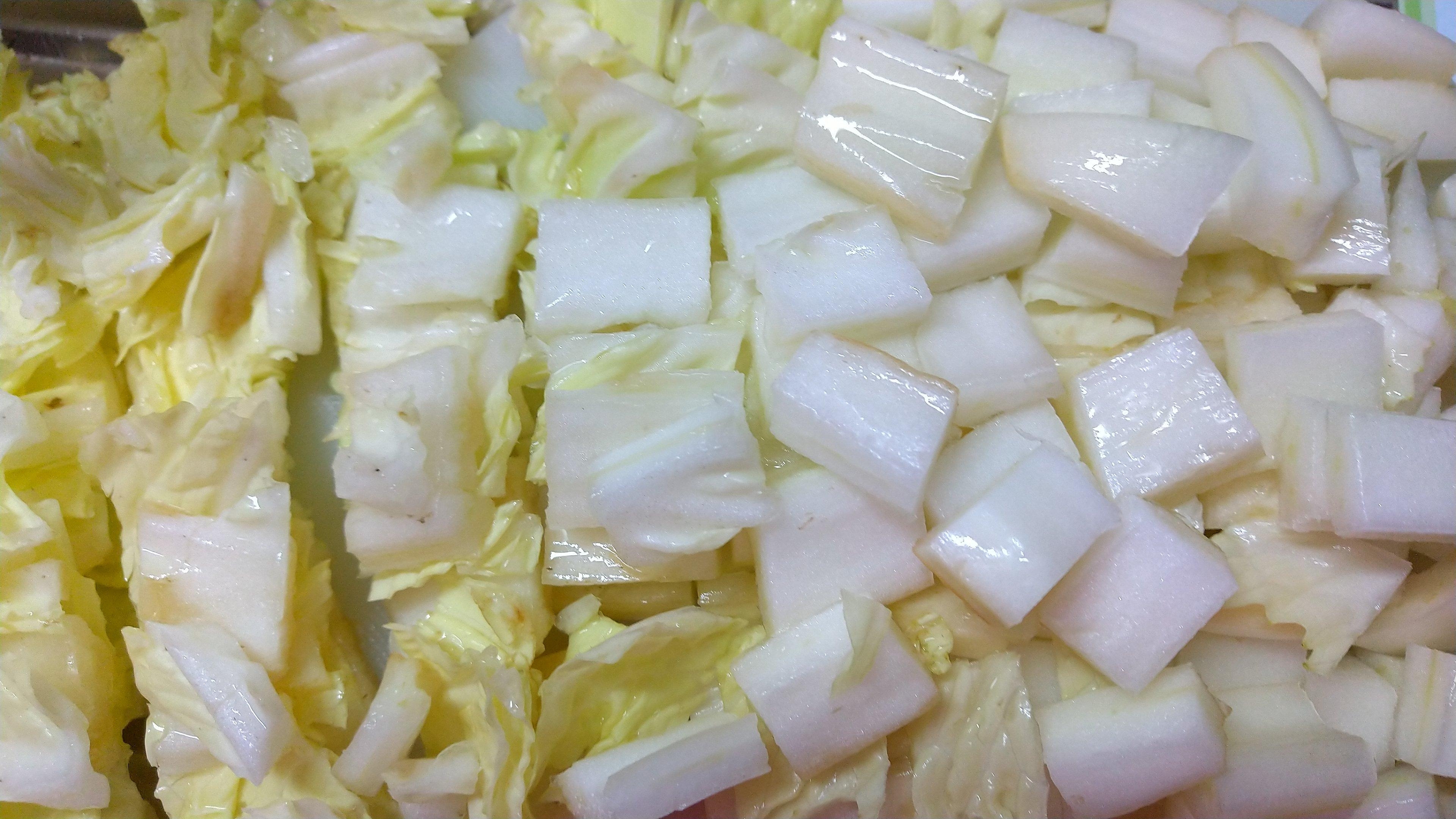 白菜を1cm角切りにカツトする