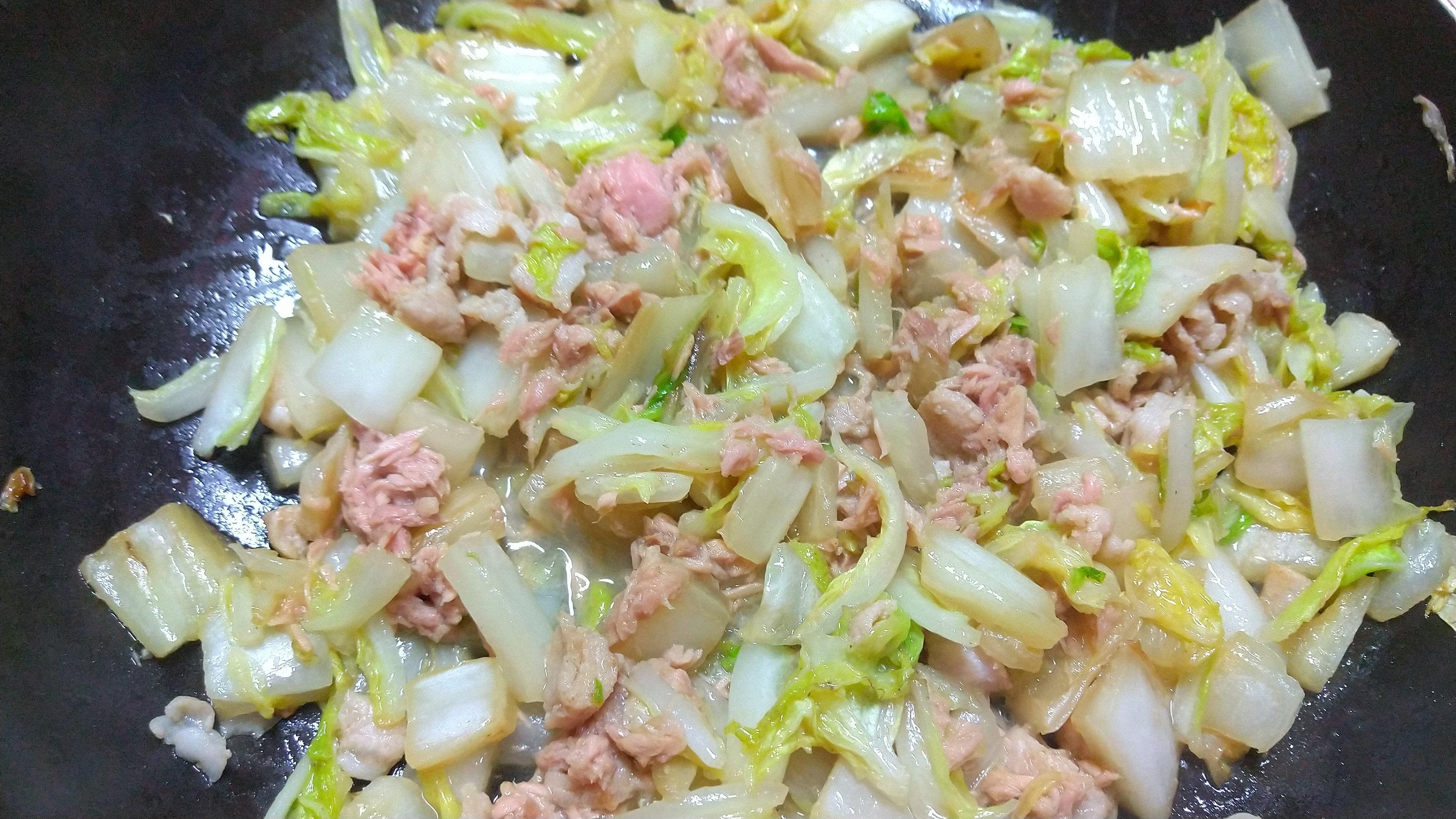 豚薄切り肉とシーチキンと白菜の和風炒め レシピ・作り方