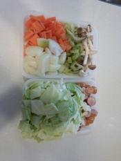具材は、食べやすい大きさ(2cmくらい)に揃えて切る。