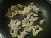 フライパンにサラダ油を入れ鶏肉を炒めます。