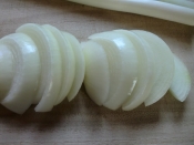玉ねぎは半分に切り、1センチの幅にざくざくと切ります。