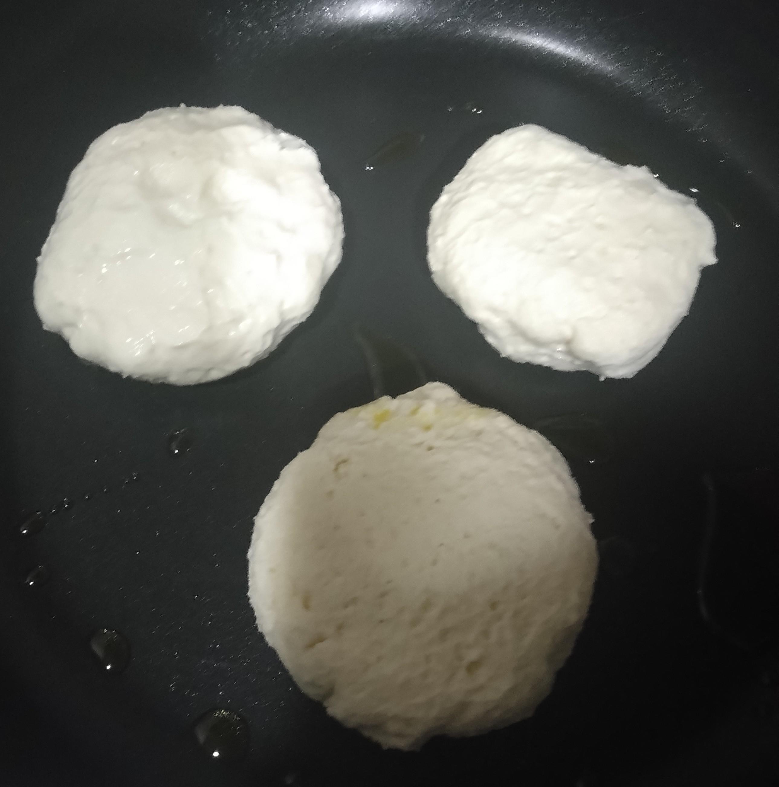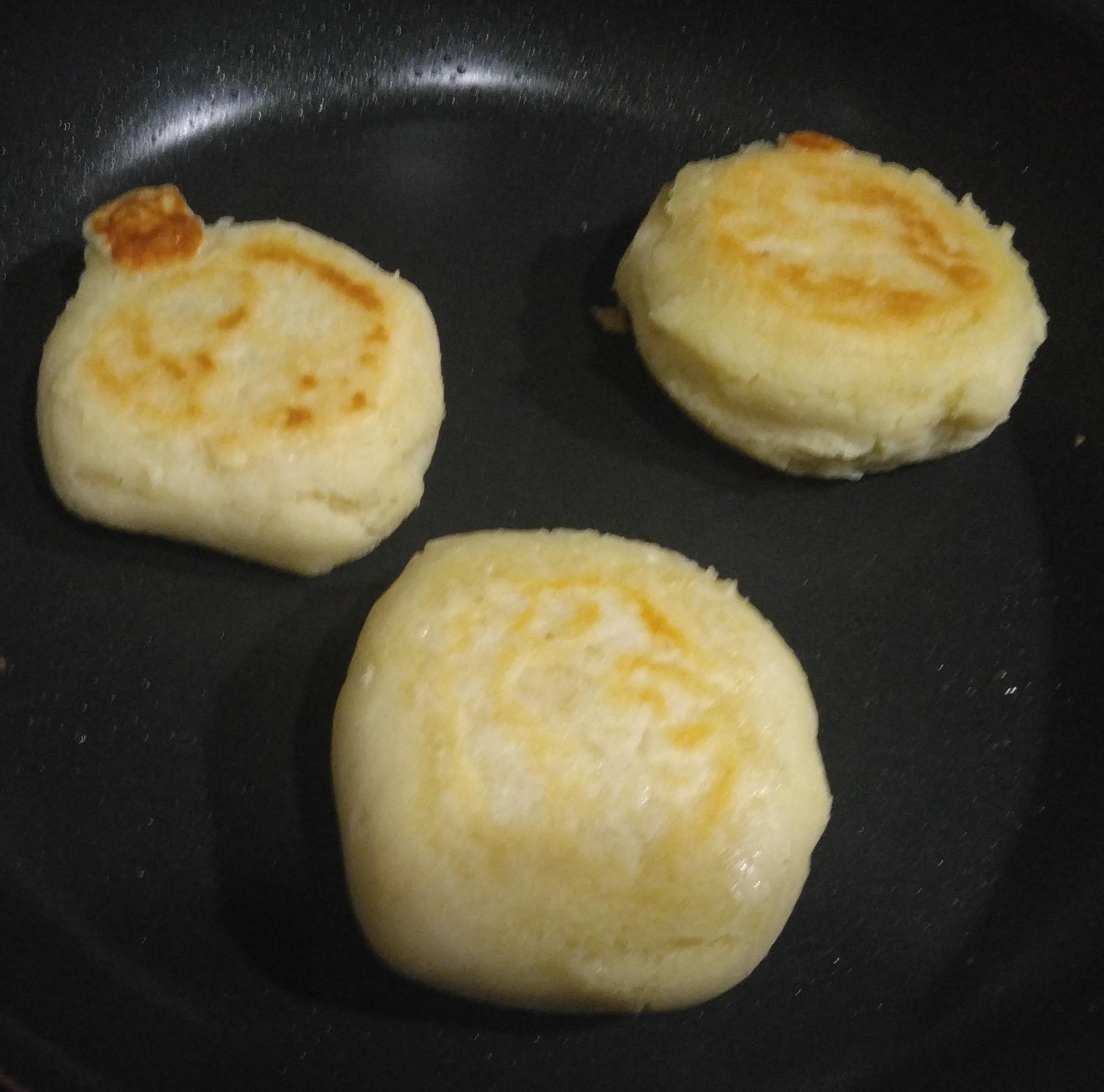 丸く形を作って中にチーズを包み✴オリーブオイルを引いたフライパンに並べる