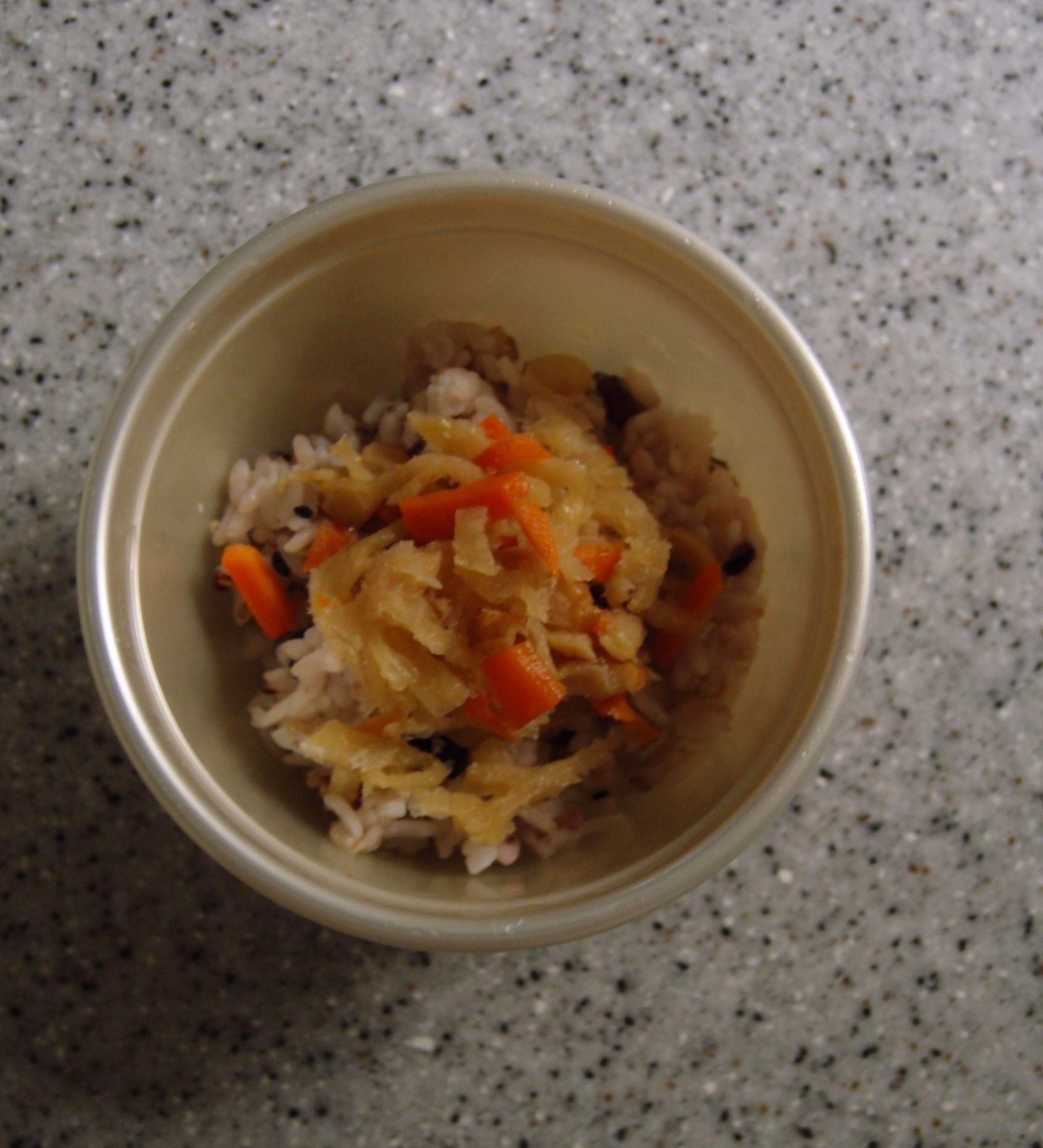 ※今回は白米2合に黒大豆・あわ・黒米等の雑穀20gを入れて炊いたご飯を使用しましたが、白ご飯でもOKです