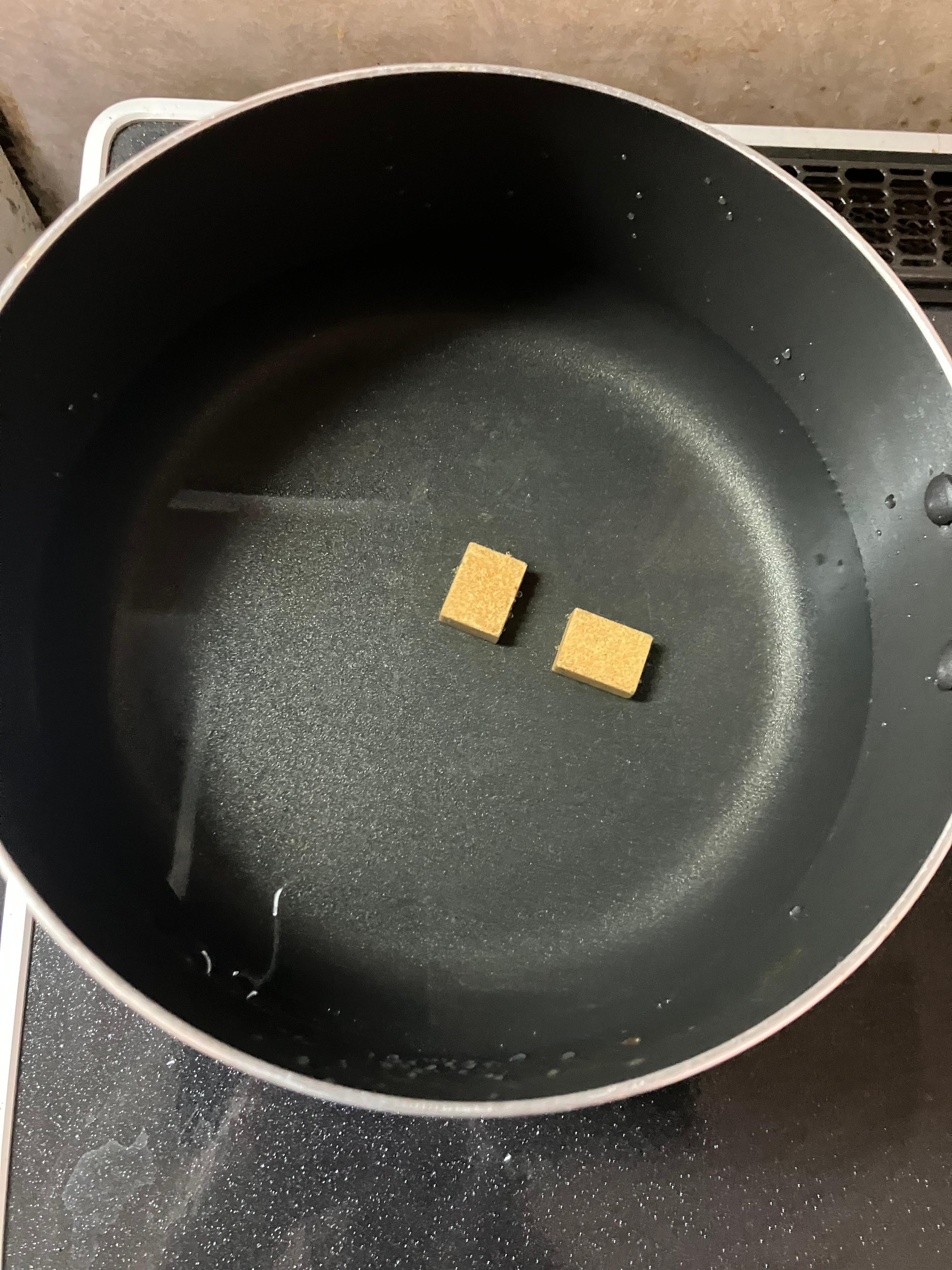鍋に水とコンソメキューブを入れ、火にかけます。