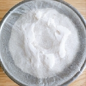 かたく絞った濡れ布巾やキッチンペーパーをかけて20分程おく。(ベンチタイム)