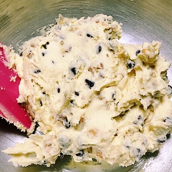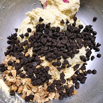 チョコチップとクルミを加え、さらに切り混ぜる。