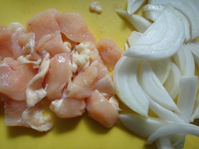 鶏肉は一口大のそぎ切りにする