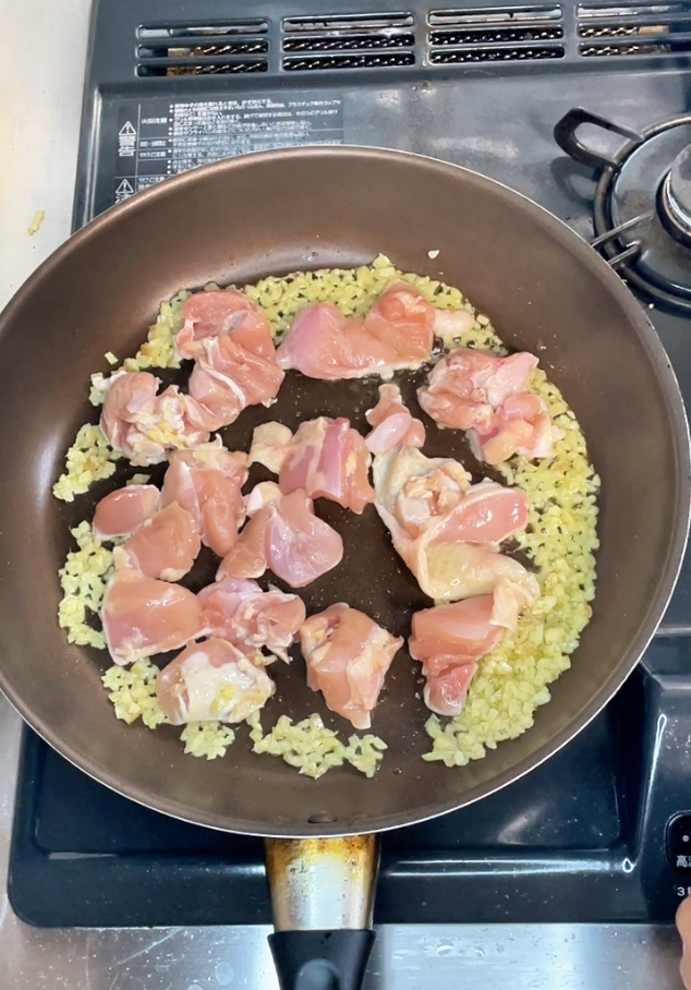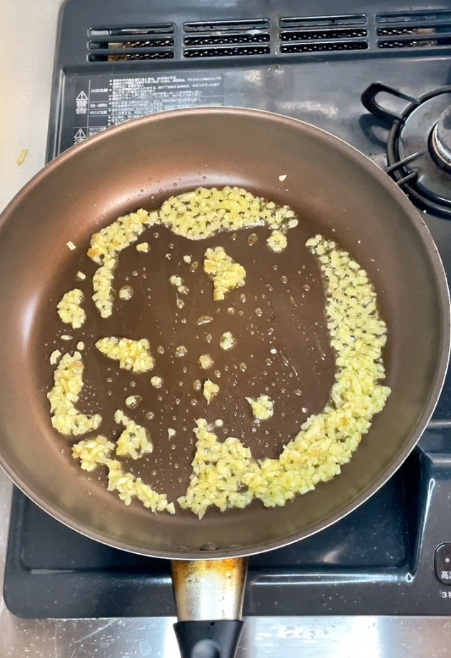 フライパンにオリーブオイルを熱し、みじん切りしょうがを軽く炒める