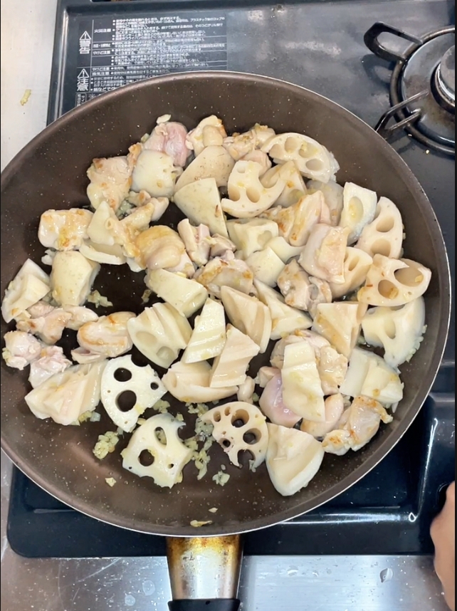 れんこんを加えてさっと炒める