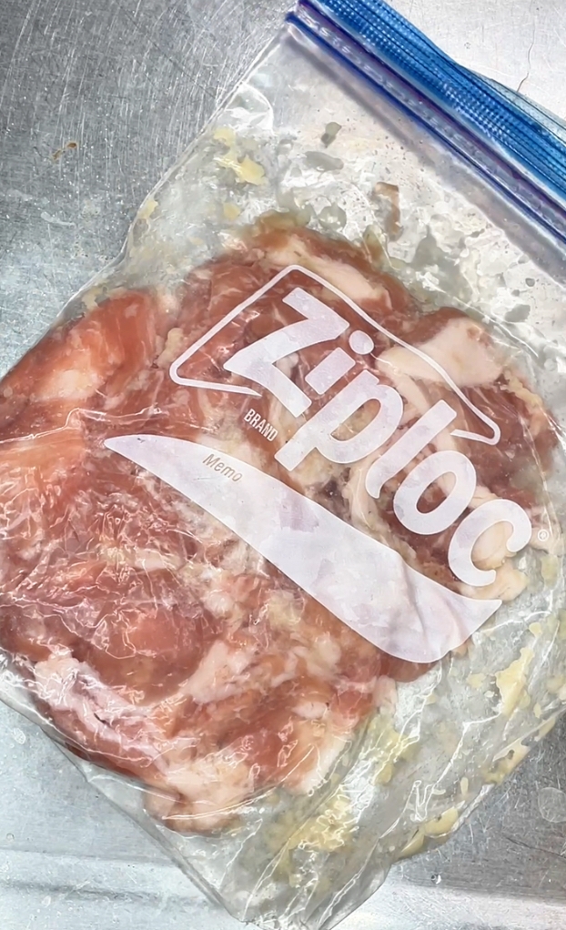 豚こま肉を食べやすく切って、塩麹に漬けておく(10分)