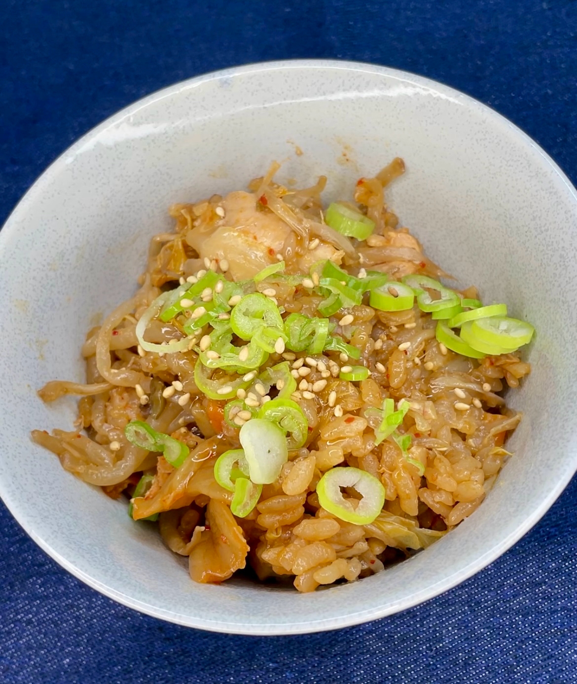 炊けたらお好みで白ごまやネギを乗せて、ごま油を回しかけて完成