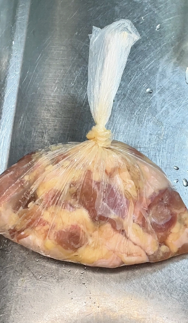 鶏肉は一口大に切って塩麹・にんにくをもみ込み、10分ほど置く