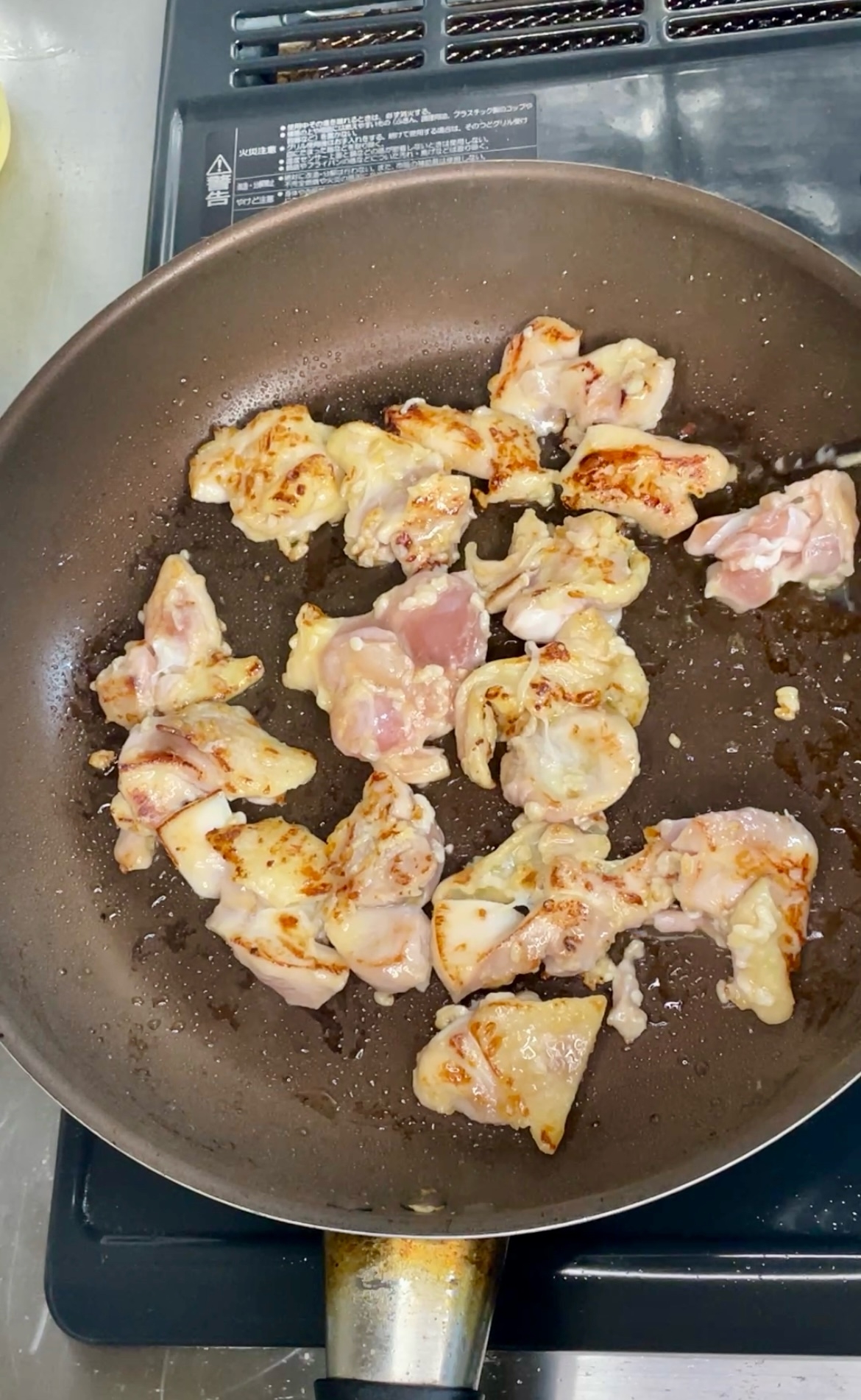 フライパンにオリーブオイルを熱し、鶏肉を焼く