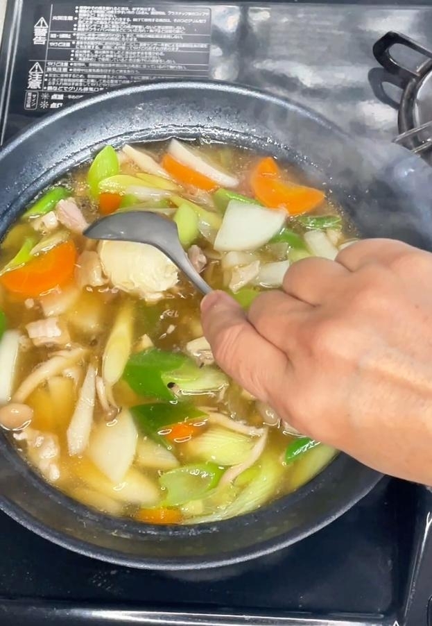 醤油麹を溶かし入れる。味見して、物足りなければしょうゆで調整