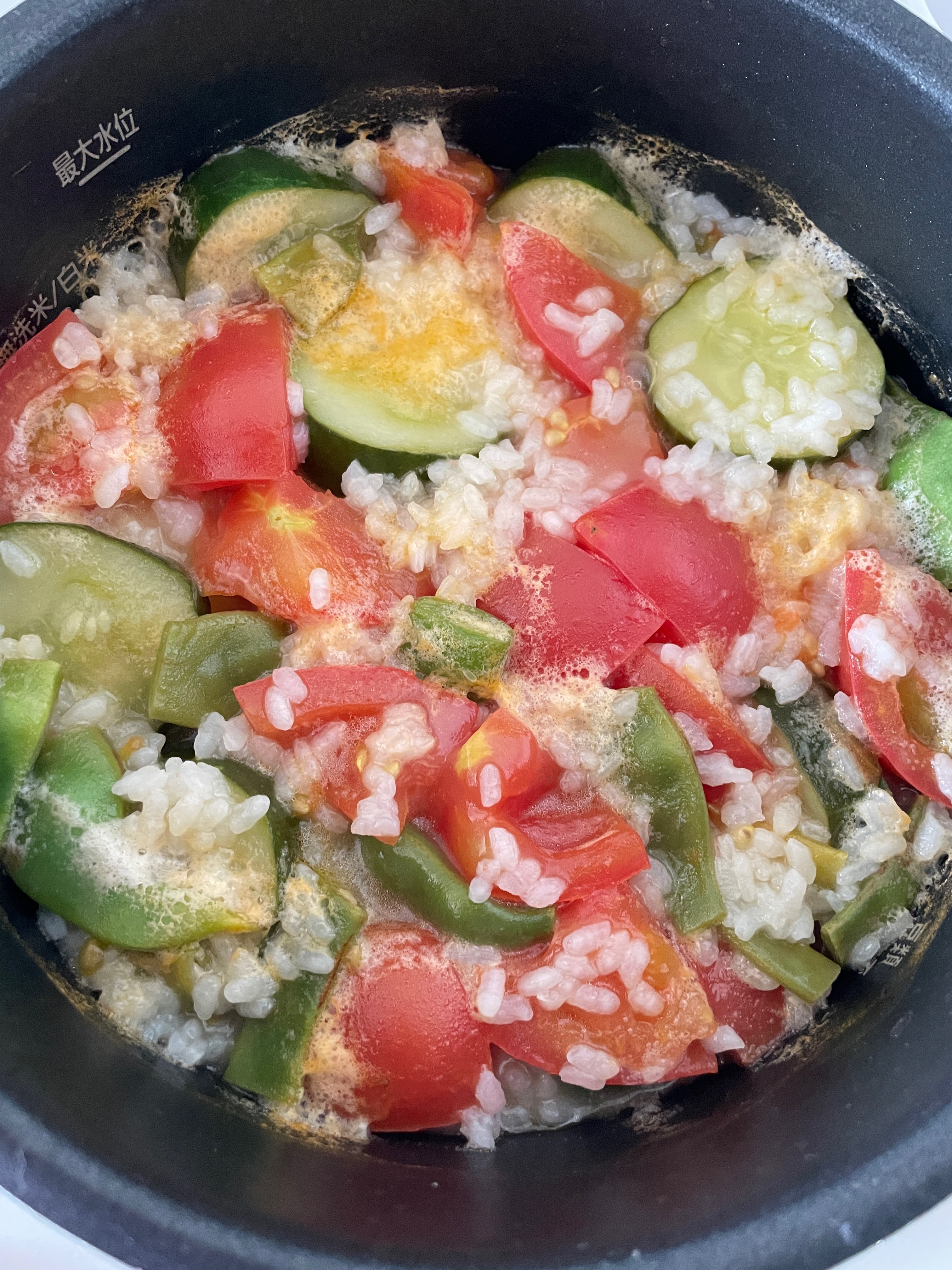 胡瓜といんげんのトマトじゃがいもリゾット レシピ・作り方