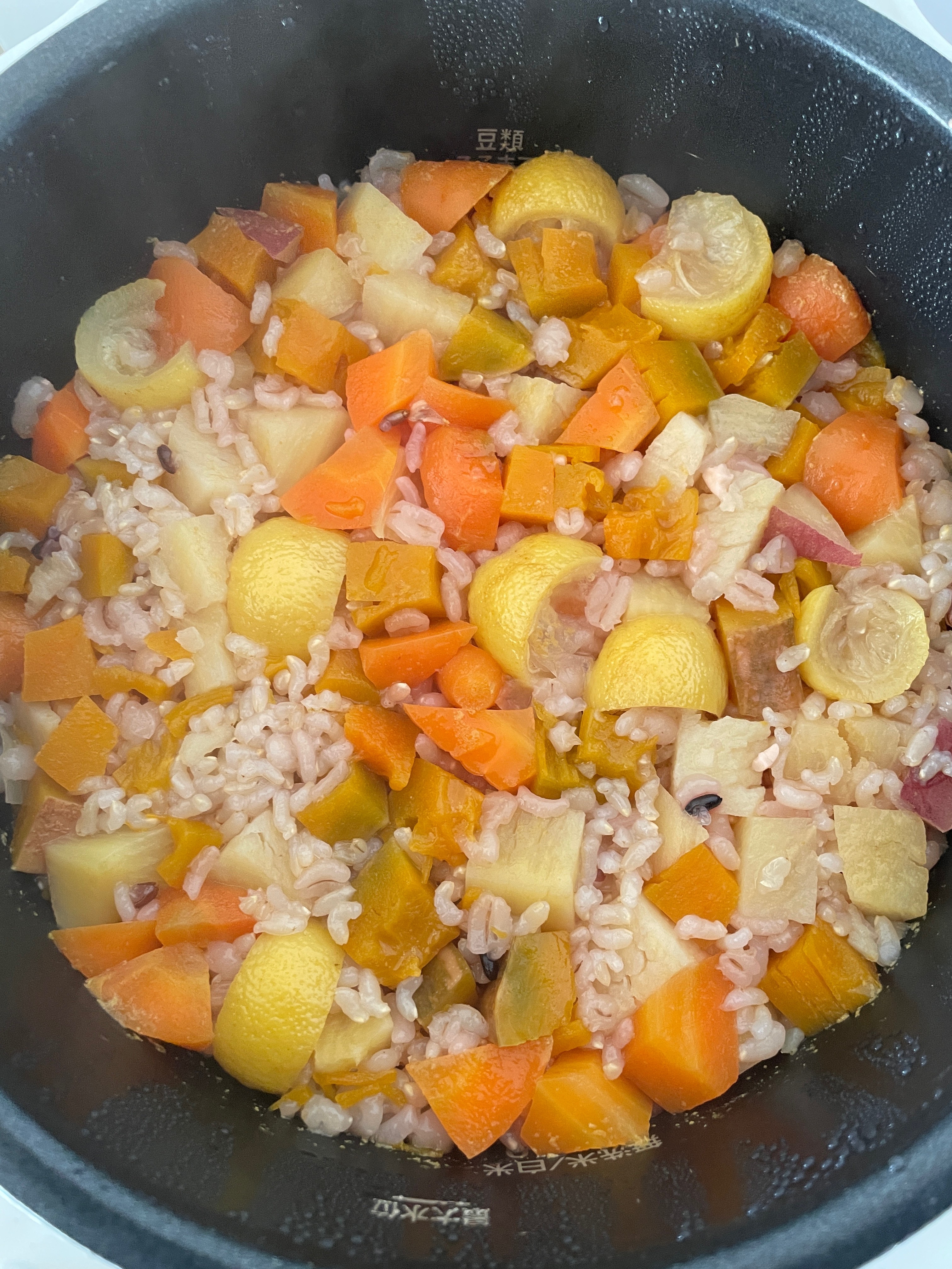 薩摩芋と南瓜の根昆布水十穀玄米人参柚子ご飯 レシピ・作り方
