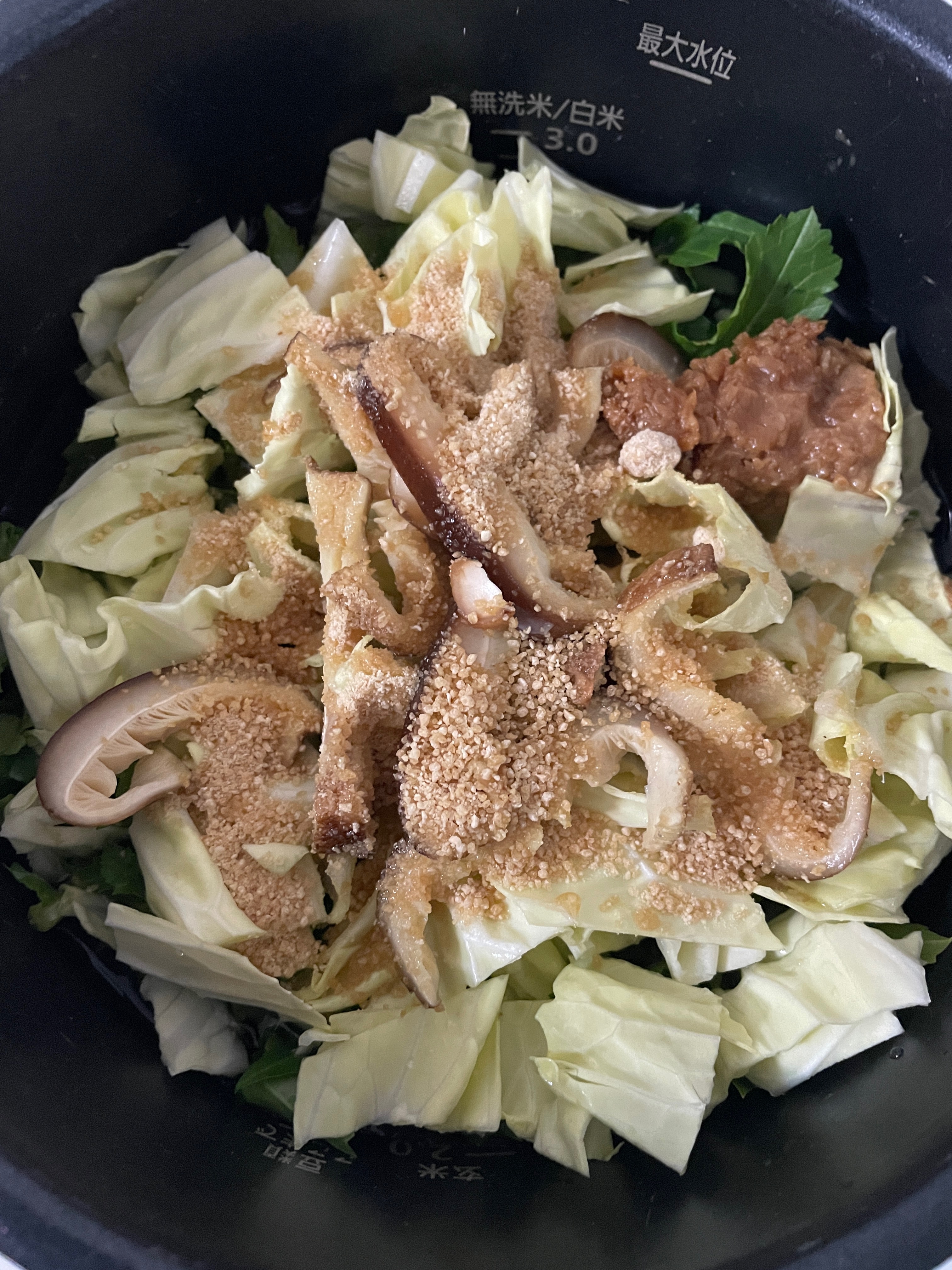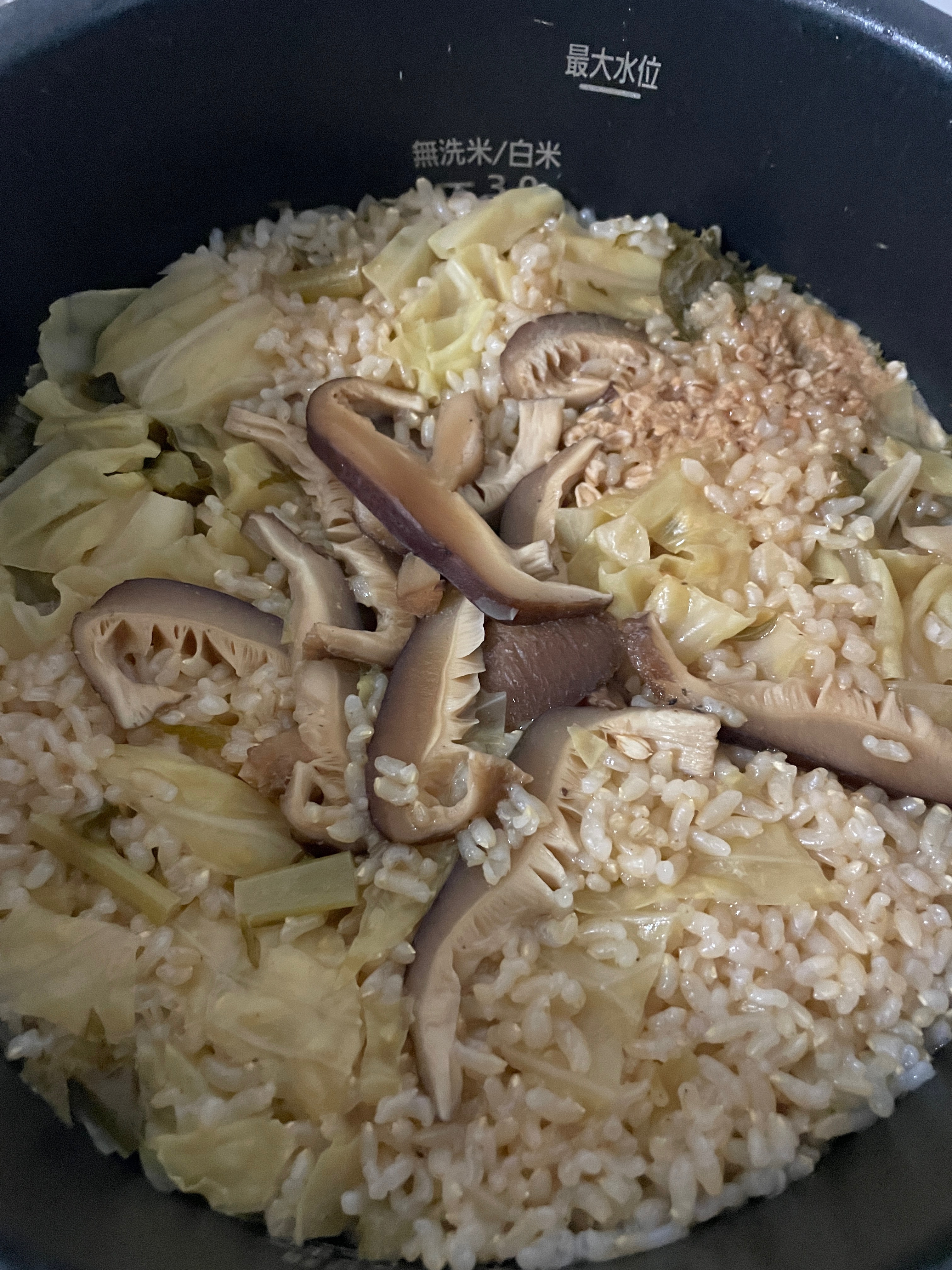 大根の葉とキャベツの根昆布椎茸麦味噌ご飯 レシピ・作り方