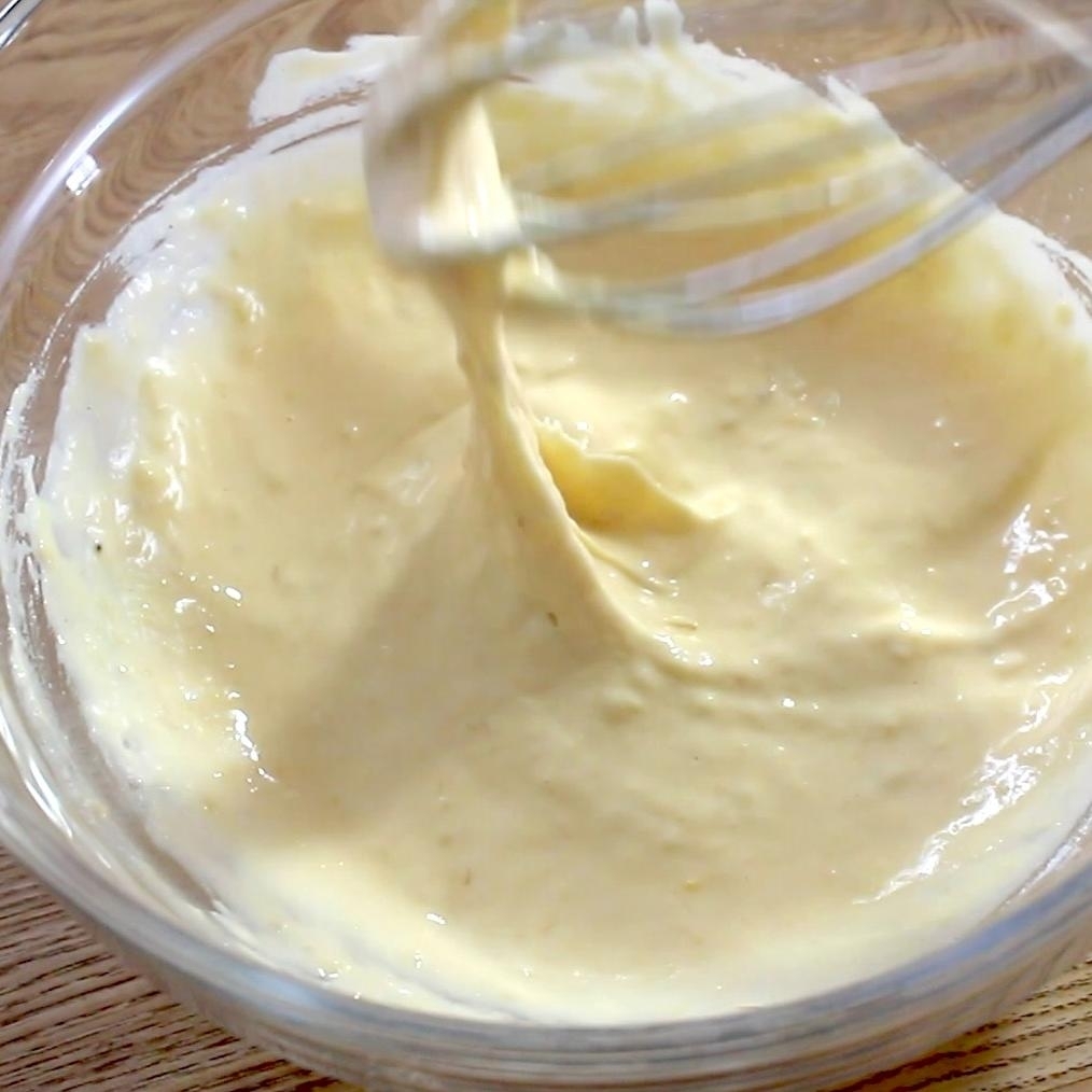 マヨネーズくらいの固さの生地です。生地が固かったら残ったバナナを追加して調整します。