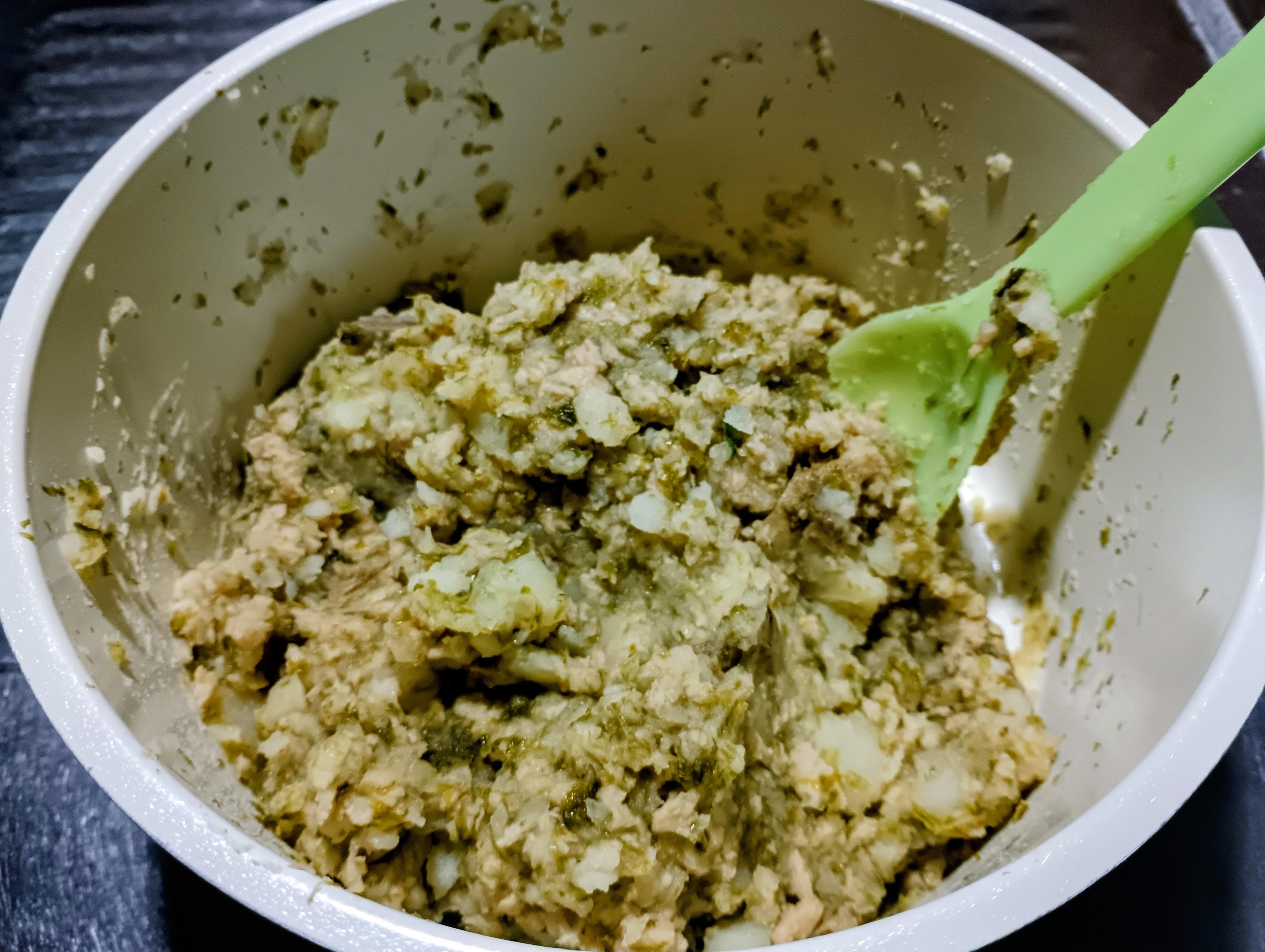 2のじゃが芋を鍋に加えて潰しながらよく混ぜ合わせます最後にごま油を加えてよく混ぜ合わせれば出来上がりです。