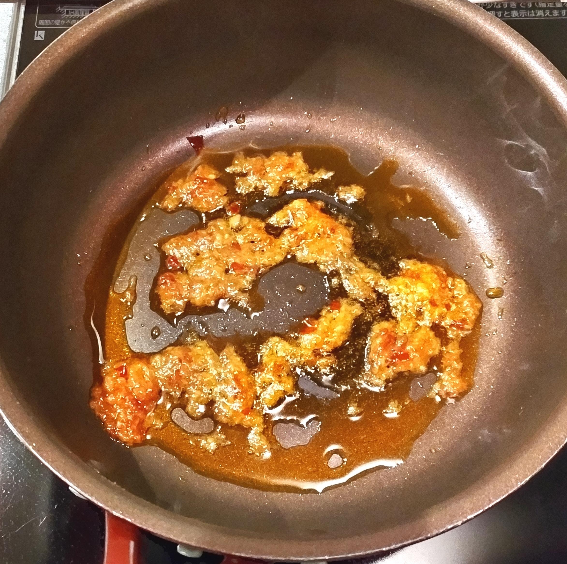 もっと辛く仕上げたい場合は、鷹の爪をみじん切りにして、手順3で一緒に炒めます。