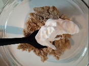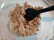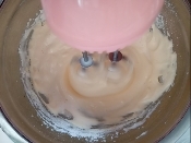 生クリームの1/3量を栗に入れ、滑らかになるまで混ぜる。3回に分けて生クリームを入れて、都度、よくかき混ぜる。