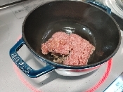 ☞ひき肉の大きすぎる塊がある時は少し潰してね