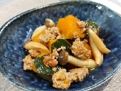 ストウブ17㌢〜かぼちゃと豚ひき肉の煮物 レシピ・作り方