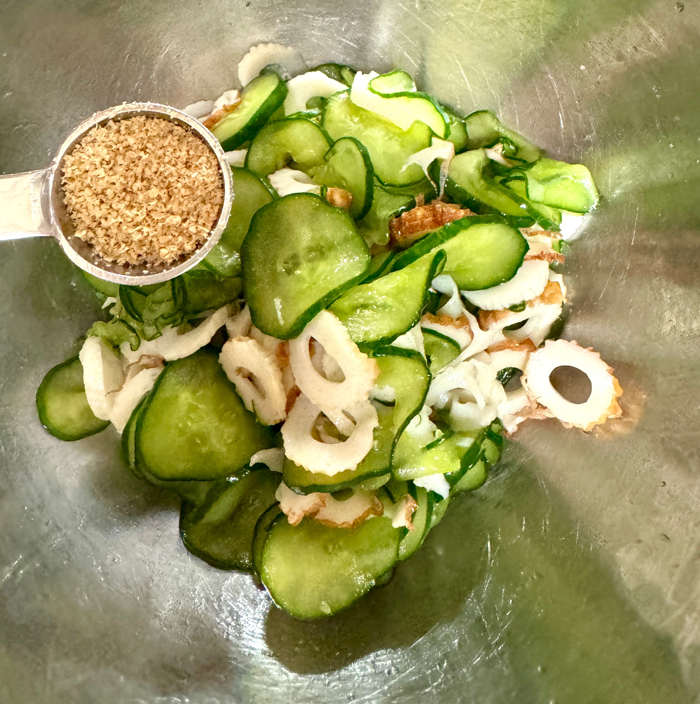 お弁当のおかず ꈍ◡ꈍきゅうりとちくわの☆ごま和え レシピ・作り方