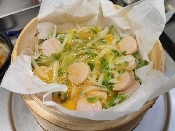 もやし✱豆苗✱魚ニソの卵とじ 蒸籠蒸し レシピ・作り方