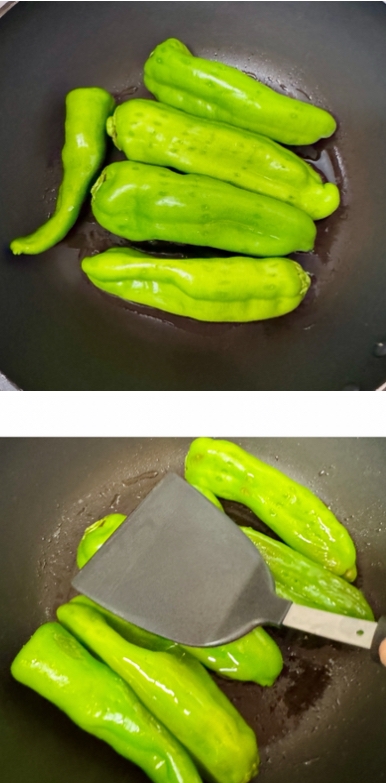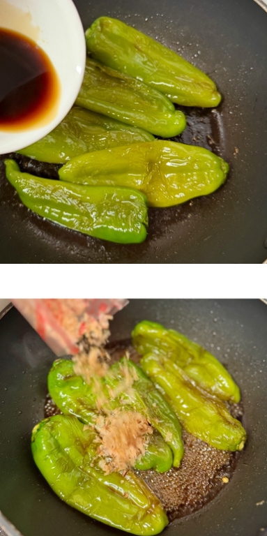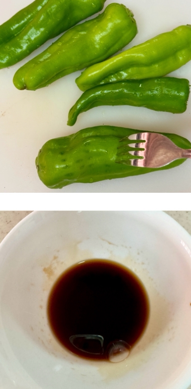 ピーマンをフォークで刺しておくと 火通りと味のしみ込みがグッ!(*˙︶˙*)و