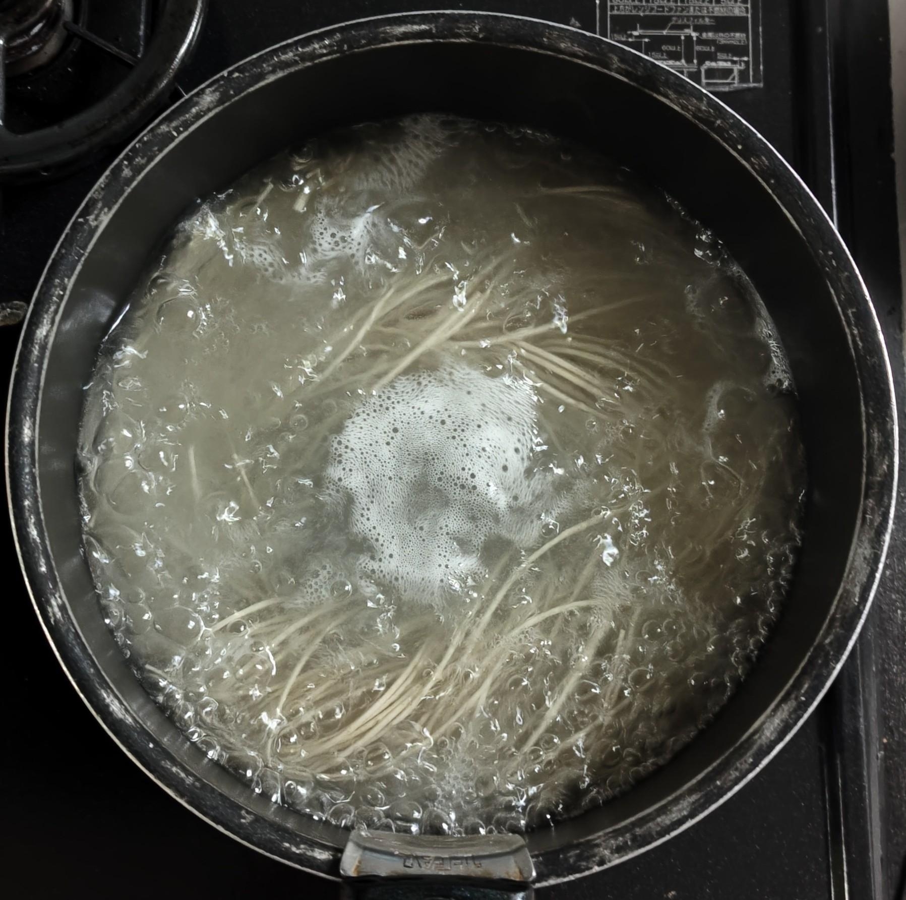 別の鍋でお湯を沸かし、そばを入れて規定時間茹でる。